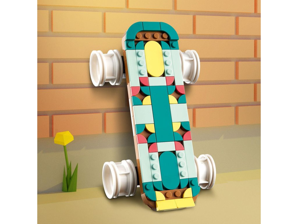 S touto stavebnicí LEGO® Creator 3 v 1 si děti postaví hned 3 různé modely ze stejné sady kostek a vychutnají si stavitelský a herní zážitek. Postaví si model kolečkové brusle, který pak přeskládají na miniaturní retro skateboard nebo na retro kazeťák s krátkou anténou. Všechny 3 modely představují poutavé výstavní kousky, které si děti po hraní hrdě vystaví v pokojíčku.