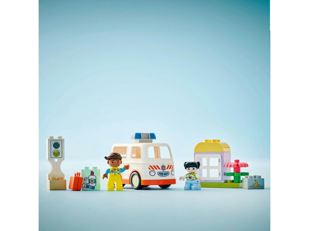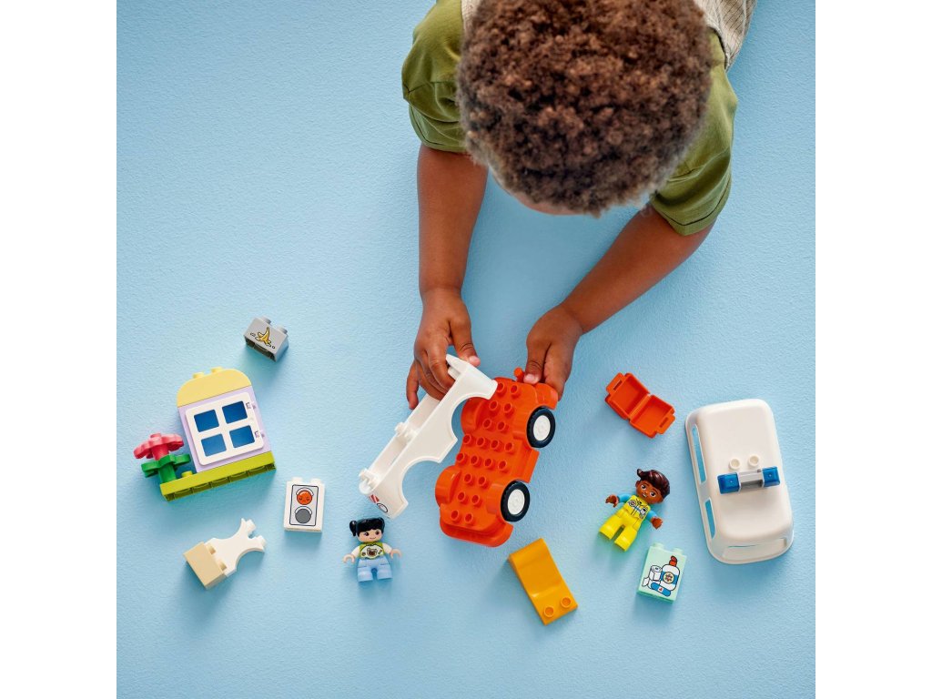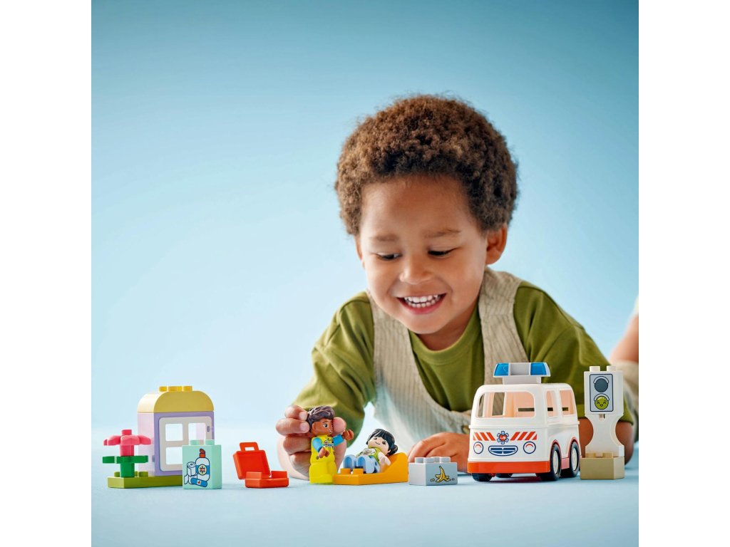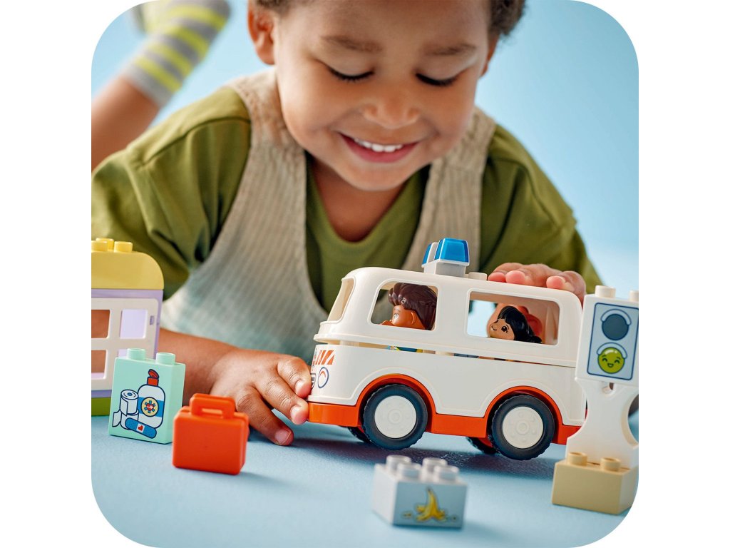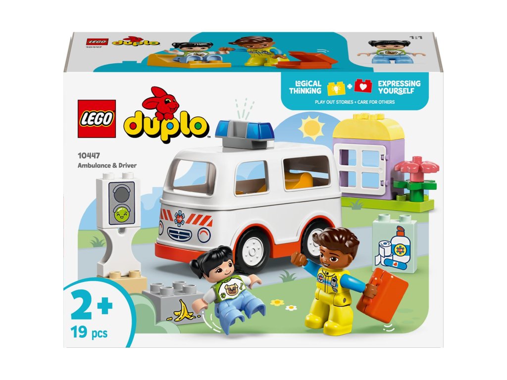 Starostlivé děti si užijí hraní napínavých záchranářských scén se stavebnicí Sanitka a řidič (10447). Součástí je pojízdná sanitka a 2 figurky LEGO® DUPLO®, záchranář a dívka, se kterými si děti užijí kreativní hru na postavy. Tato kreativní hračka LEGO DUPLO představuje skvělý dárek pro malé děti, které mají rády hry na rozvoj sociálních a emočních dovedností, a pomůže jim prohlubovat empatii. Součástí návodu na stavění je tištěné herní kolečko, se kterým rodiče a děti prozkoumají různé emoce postavičky holčičky. Děti s jeho pomocí vyjádří své pocity při tom, když se někdo necítí dobře, nebo jak se cítily, když poprvé viděly sanitku. Stavebnice také pomáhá rozvíjet logické myšlení při sestavování sledu událostí a jemné motorické dovednosti při otevírání střechy sanitky, přes kterou umístí figurku na sklápěcí lůžko. Tato vzdělávací hračka také pomáhá malým dětem rozvíjet sociální dovednosti při rozhodování, jak bude řidič sanitky zacházet s pacientkou.