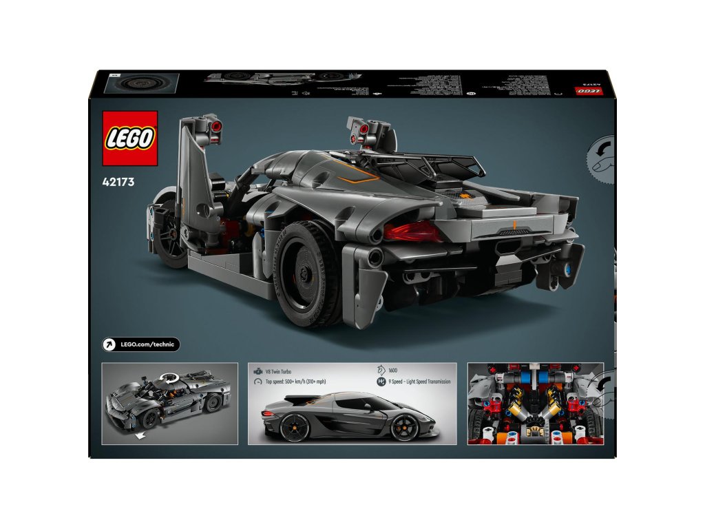 Inspirujte kluky a holky od 10 let k sestavení vlastního luxusního vozidla LEGO® Technic (42173) Šedé hyperauto Koenigsegg Jesko Absolut. Děti, které milují sestavitelné modely aut, se při sestavování všech detailů mohou těšit na obohacující výzvu. A stavění modelu je teprve začátek! Tato stavebnice vzdává hold jednomu z nejrychlejších hyperaut na světě, které smí jezdit po silnici, a je plná funkcí, které mohou automobiloví nadšenci objevovat. Malí stavitelé mohou při stavbě pohyblivého motoru V8 a diferenciálu prozkoumat řadu technických konceptů. Pak otestují řízení pomocí odnímatelného knoflíku, který lze vložit do přední části vozu. Úchvatnou vychytávkou v této stavebnici pro děti je systém synchro-helixových dveří, které se otevírají do úhlu 90 stupňů směrem ven, stejně jako u skutečného hyperauta. Toto vozidlo LEGO Technic představuje skvělý dárek pro děti, které milují auta. Součástí je aplikace LEGO Builder, která stavitelům umožňuje přibližovat a otáčet modely ve 3D. Rozměry – Stavebnice se skládá z 801 dílků a model měří přes 8 cm na výšku, 28 cm na délku a 13 cm na šířku