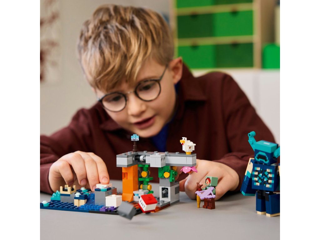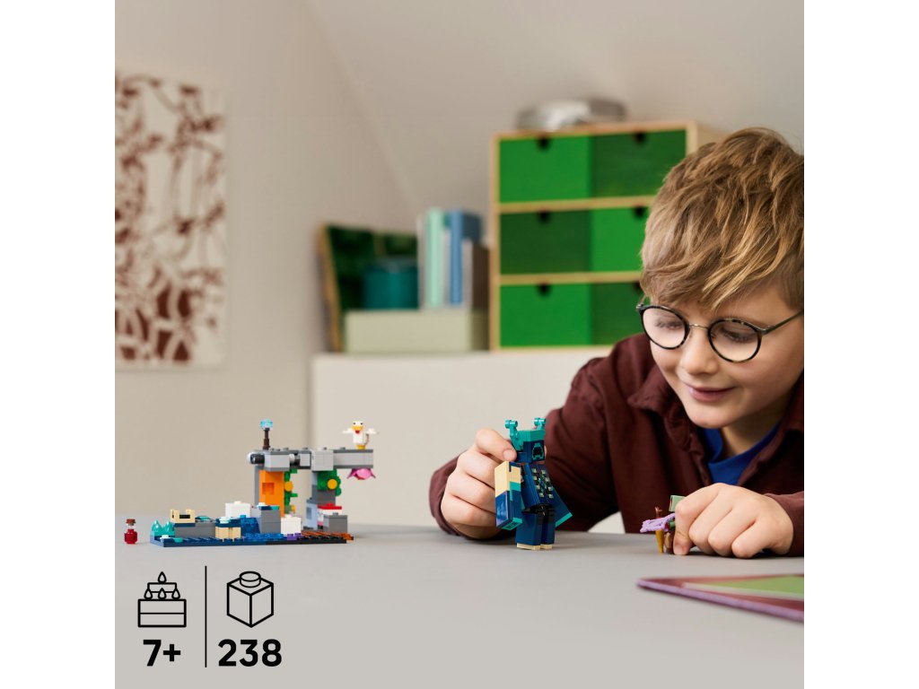 Se stavebnicí Setkání se Strážcem (21274) z kostek LEGO® se hráči Minecraftu vydají na akční důlní dobrodružství v hluboké, temné zarostlé jeskyni. Tato kreativní sběratelská stavebnice Minecraft pro kluky i holky představuje skvělý dárek k narozeninám, Vánocům nebo jakékoli jiné příležitosti pro děti od 7 let. Tato všestranná stavebnice LEGO se odehrává v bujné jeskyni se sběratelskými diamanty a ametysty a obsahuje minifigurku tichého lovce ze světa Minecraft, slepici a velkou sestavitelnou figurku Strážce Minecraft s pohyblivou hlavou, rukama a nohama. Mezi herní funkce modelu patří ručně aktivovaný výbuch TNT a padající kámen. Mezi doplňky najdete také uzdravující zlatou mrkev a lektvar. Pro více digitální zábavy si děti můžou své modely přibližovat a otáčet ve 3D v aplikaci LEGO Builder. Stavebnice se skládá z 238 dílků.