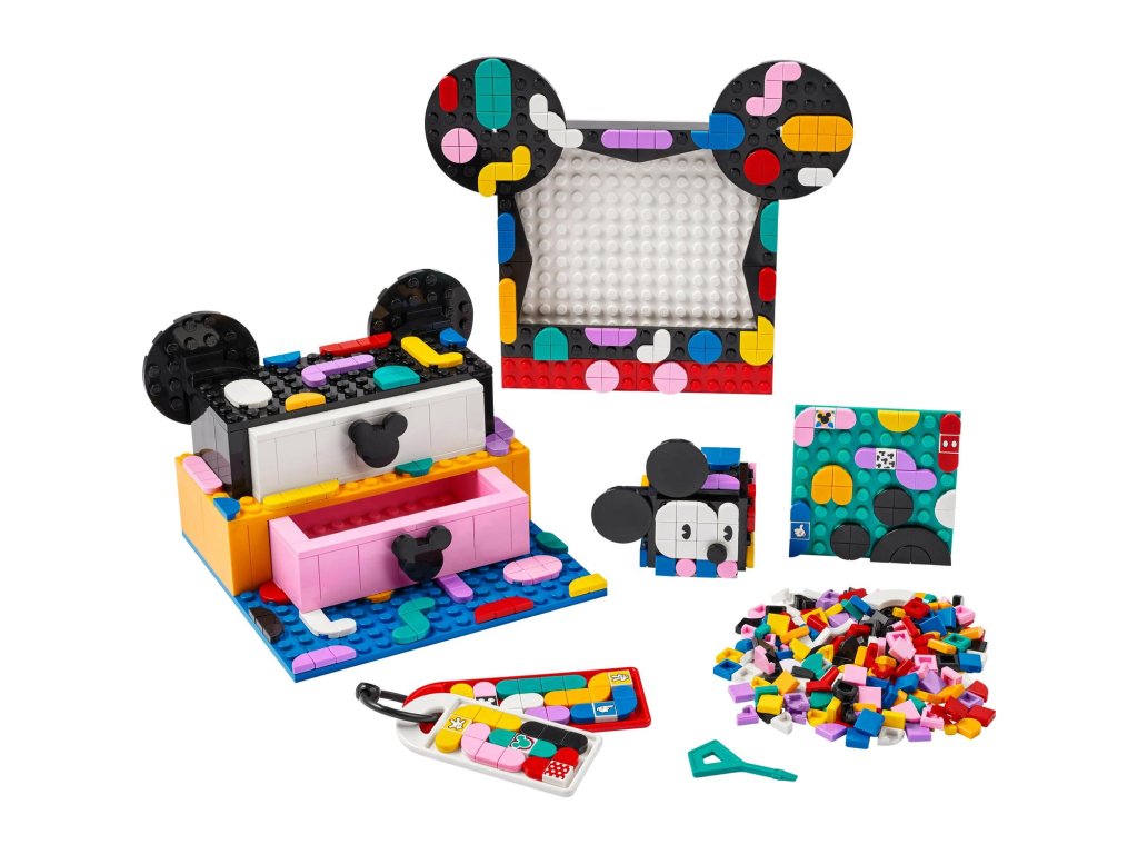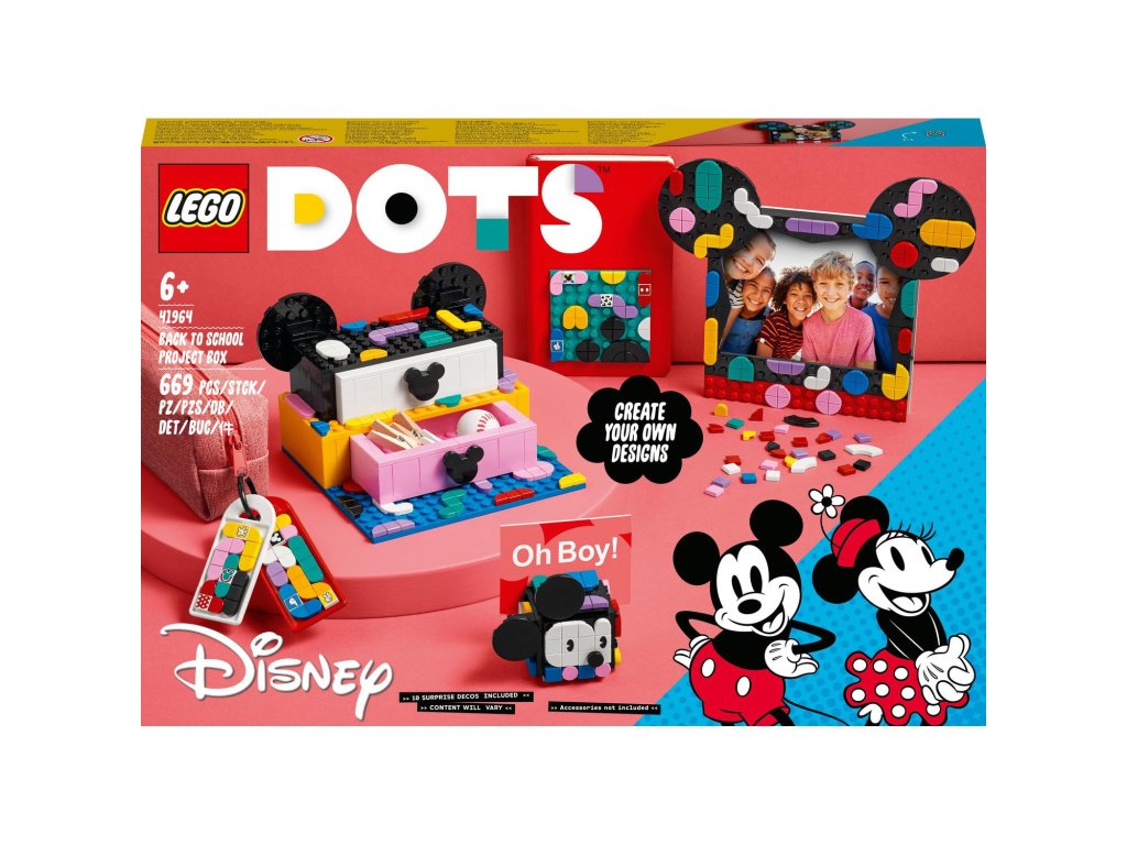 Obdarujte příznivce umění a tvoření nebo fanoušky studia Disney od 6 let dárkem, který se na dětském hřišti stane středobodem pozornosti: kupte jim školní boxík Myšák Mickey a Myška Minnie (41964) od LEGO® DOTS | Disney! Těšit se můžete na 6 různých pracovních ploch DOTS, včetně 2 zásuvek s Mickeyho ušima, rámečku, držáku na poznámky s tajným prostorem uvnitř, 2 plochých ozdob na tašku a nalepovacích záplat, ale také na spousty zdobítek (včetně 10 exkluzivních zdobítek na motivy Mickeyho a jehokamarádů). Děti se mohou kreativně realizovat a vyjádřit takřka neomezenou škálu emocí.
