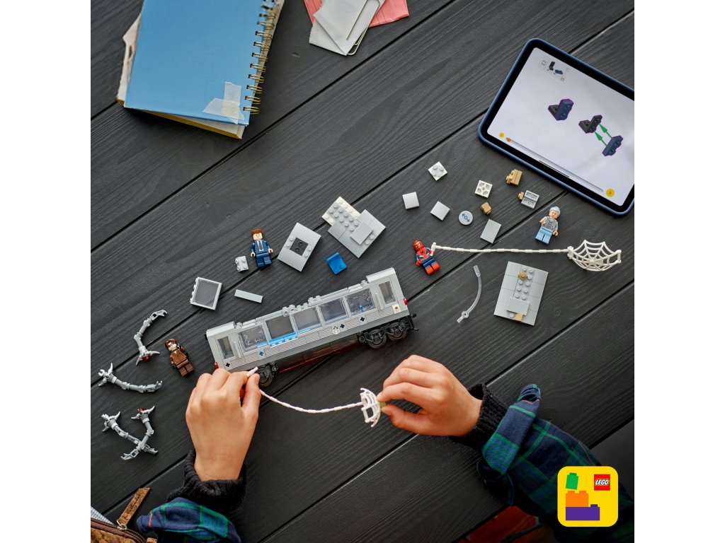 Tato superhrdinská stavebnice s modelem metra je inspirovaná kultovní scénou z filmu Spider-Man 2 od studia Marvel. Součástí jsou 4 minifigurky: J. Jonah Jameson, teta May, Spider-Man a Doc Ock. Minifigurka Spider-Mana má vyměnitelné hlavy – s maskou i bez ní – a velkou pavučinu, kterou lze připevnit k vlaku. Minifigurka Doc Ocka má 4 pohyblivá chapadla, 2 s dílky „laserového paprsku“ a 2 s klipy, které lze připevnit k vlaku. Po odejmutí střechy můžete nahlédnout do interiéru vlaku, kde je dostatek místa pro usazení minifigurek. Pro ještě větší digitální zábavu můžou stavitelé přibližovat a otáčet modely ve 3D a sledovat svůj postup pomocí intuitivní aplikace LEGO Builder. Stavebnice obsahuje 393 dílků.