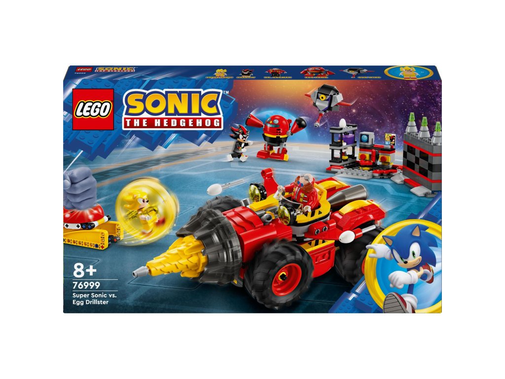 Podpořte představivost fanoušků videoher os 8 let s dobrodružnou stavebnicí Super Sonic vs. Egg Drillster (76999). Tento sběratelský videoherní dárek LEGO® Sonic the Hedgehog™ obsahuje vozidlo Egg Drillster s otočným vrtákem a dokovací stanicí proodnímatelné vznášedlo, vystřelovač koulí rychlosti a kouli rychlosti, a k tomu navíc laboratoř s rozbíjecí se zdí. Obsahuje také 7 videoherních postav: Shadow, Super Sonic, Dr. Eggman, Pocky, Pecky, Badnik Egg Pawn „přeprogramovaný“ Gun Wing.