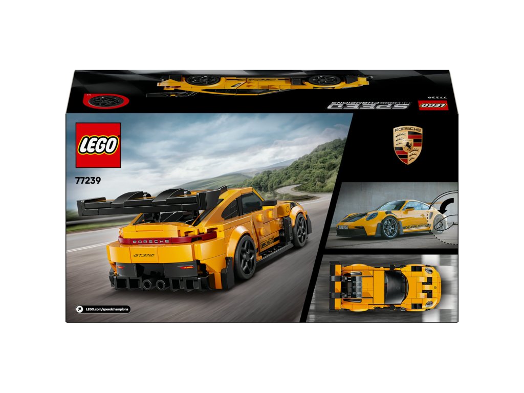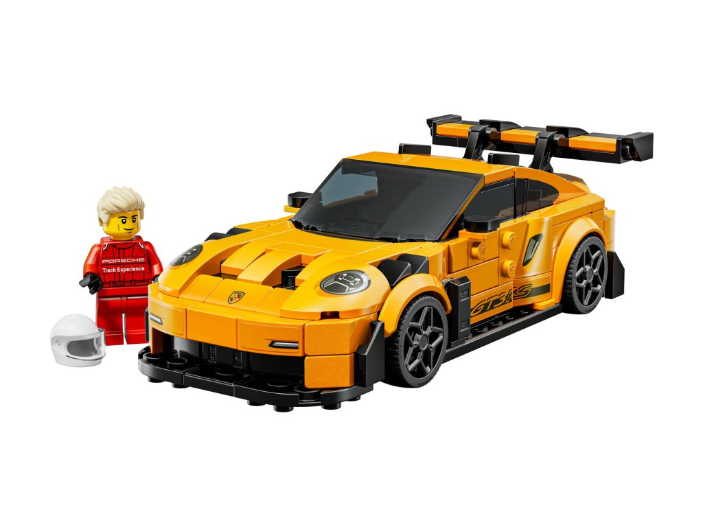 Model Porsche 911 GT3 RS se pyšní známým zadním křídlem, sáním na kapotě, výraznými světlomety a moderními ráfky. Součástí této stavebnice vozu LEGO je také minifigurka řidiče v helmě ačervené kombinéze Porsche Track Day Experience. Děti minifigurku posadí za volant a uspořádají vlastní závody na trati.