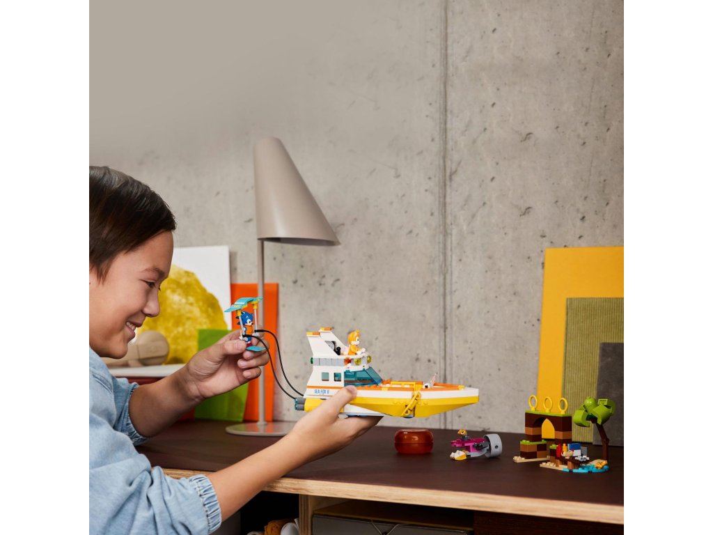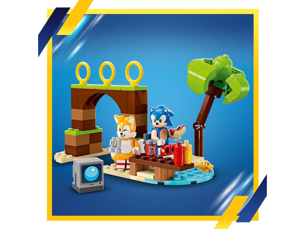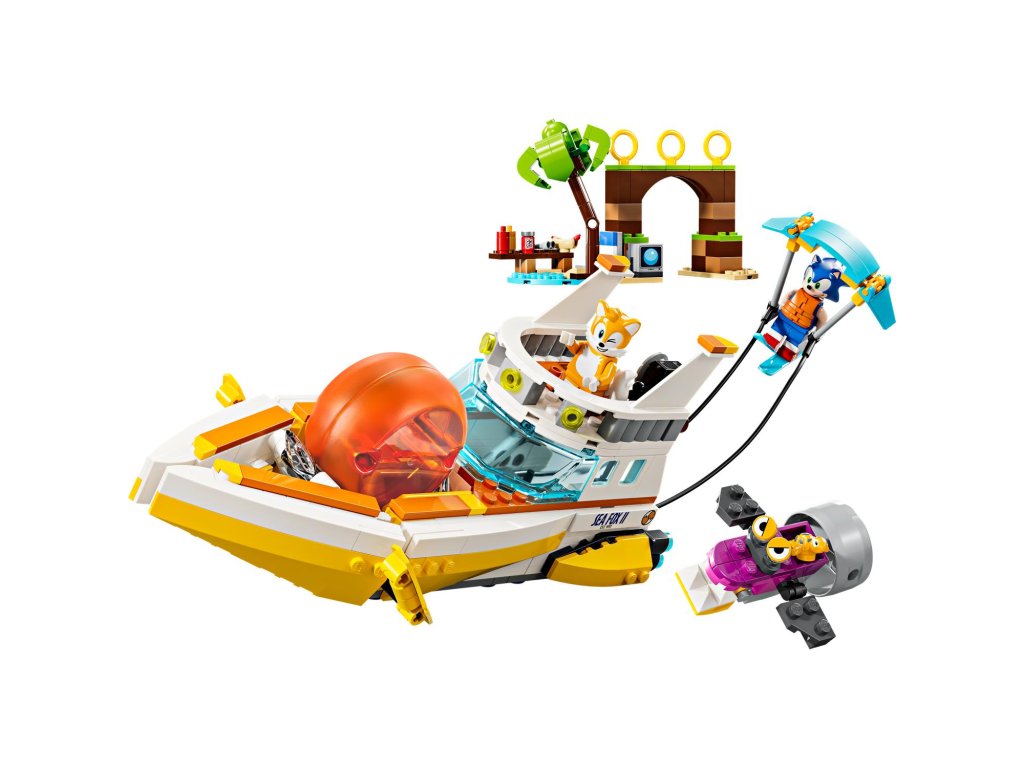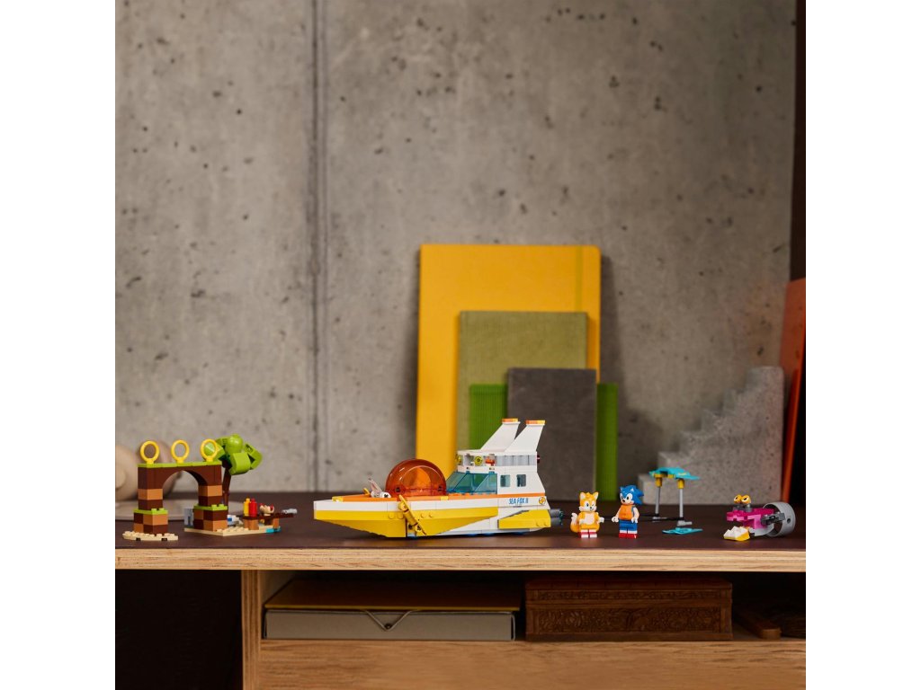 Hračka pro děti ze světa Sonica – Potěšte kluky, holky a fanoušky od 8 let stavebnicí Tails a jeho dobrodružný člun, která je plná akce a umožní dětem vytvářet příběhy s oblíbenými postavami ze světa Sonic the Hedgehog™. Zábavné možnosti hraní rolí se 4 postavami, model ostrova se 3 Kroužky, obloukem, plážovým lehátkem a dalšími doplňky. Tato parádní stavebnice Sonic umožňuje fanouškům Modré šmouhy vymýšlet si se Sonicem a Tailsem nekonečné příběhy: od párty na člunu s tancem, karaoke, vodním lyžováním a parasailingemaž po odpočinek na ostrově po poražení Jawze a záchraně Tockyho.• Rozměry – Stavebnice se skládá z 393 dílků a model člunu měří přes 10 cm na výšku, 11 cm na délku a 23 cm na šířku.