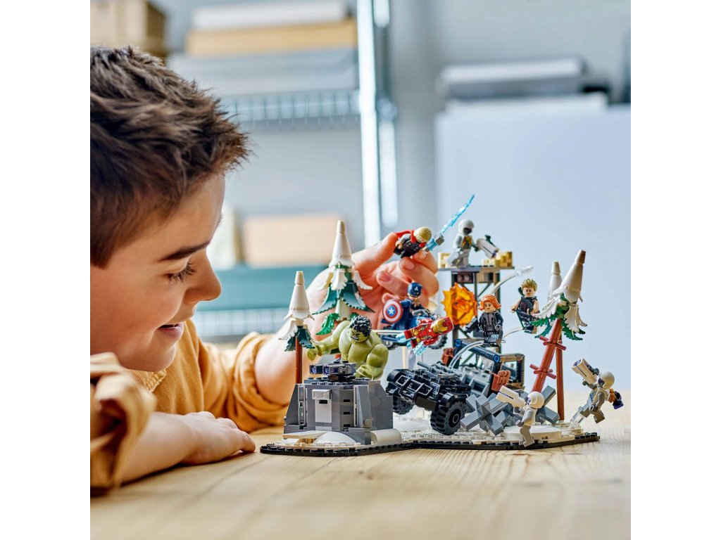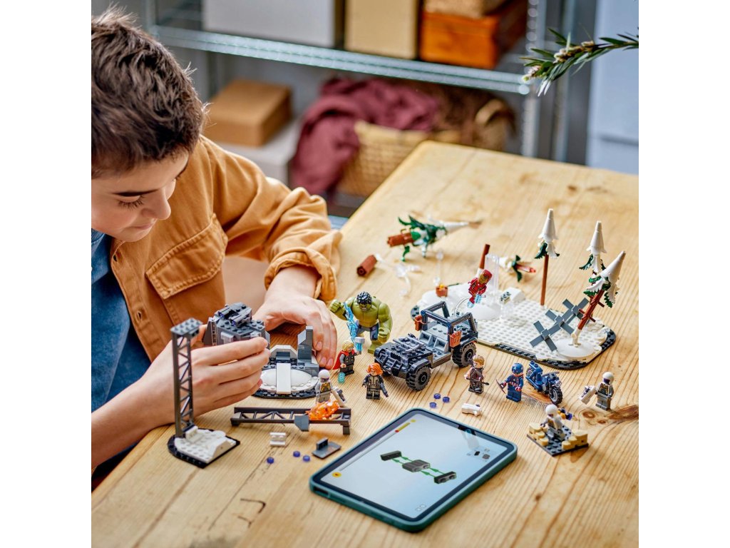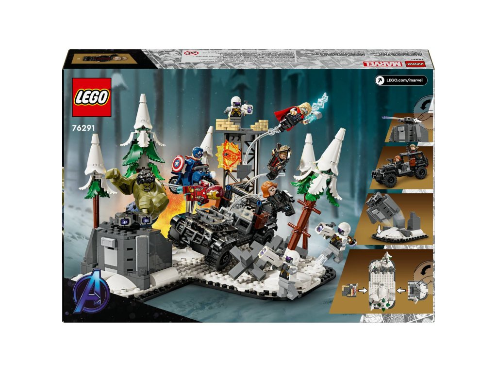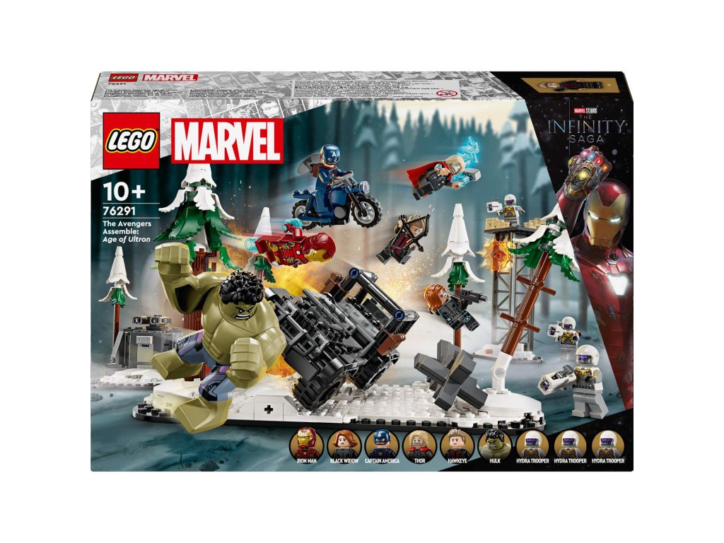 Stavebnice The Avengers Assemble: Age of Ultron (76291) je sběratelská superhrdinská stavebnice LEGO® plná autentické akce Avengers. Díky kultovním postavám od Marvelu a modulárnímu mega designu se jedná o ideální dárek pro fanoušky superhrdinských stavebnic, minifigurek LEGO Marvel a modelářství od 10 let. Stavebnice je založena na velké bitevní scéně z filmového hitu Avengers: Age of Ultron od Marvel Studios. Součástí všestranné stavebnice je 5 minifigurek Avengers – Hawkeye, Black Widow, Kapitán America, Iron Man a Thor – velká figurka Hulka a 3 minifigurky vojáků Hydry. Pět (5) modulů, které stavebnici tvoří, lze nakonfigurovat na nekonečné herní možnosti nebo kombinovat a vytvořit tak působivý výstavní kousek. Obsahuje celou řadu zbraní a doplňků, které inspirují k nápaditému hraní, a také terénní vozidlo. Intuitivní aplikace LEGO Builder dětem umožní přibližovat si modely, otáčet je ve 3D, ukládat stavebnice a sledovat postup při stavění.