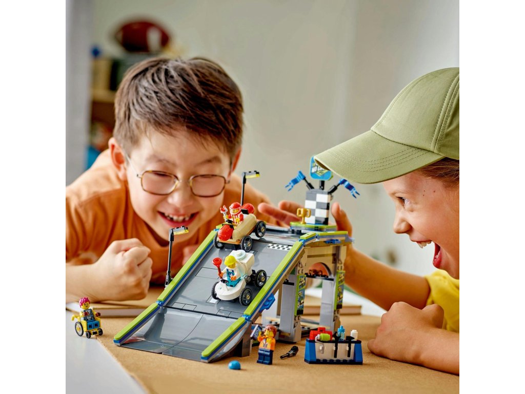 Nadchněte svou ratolest napínavou stavebnicí LEGO® City (60460) Tvoje pravidla: Závodní dráha s rampami pro děti od 6 let. Tato dynamická závodní stavebnice obsahuje rampu pro autíčka a 2 jedinečné závodní minikáry. Sledujte, jak děti umístí vtipné vozidlo v podobě párku v rohlíku a záchodu na vrchol rampy a zatlačením páky je vymrští ze startovní čáry. Součástí stavebnice jsou 4 minifigurky řidičů, včetně prodavače párků v rohlíku a instalatéra, které děti inspirují k nápaditému hraní a vyprávění příběhů. Tento model závodních minikár LEGO je dodáván s tištěným návodem na stavění. Děti se můžou těšit na zábavné stavitelské dobrodružství s aplikací LEGO Builder. V ní si lze přibližovat a otáčet modely ve 3D, ukládat stavebnice, sledovat postup a prohlížet další stavebnice. Ve stavebnicích z řady LEGO City na vás čekají parádní vozidla, realistické modely a zábavné postavy, které inspirují k hraní bez hranic. Děti můžou tuto stavebnici minikár kombinovat s dalšími sadami z řady LEGO City (prodávají se samostatně) a rozšířit si tak svět herních možností.