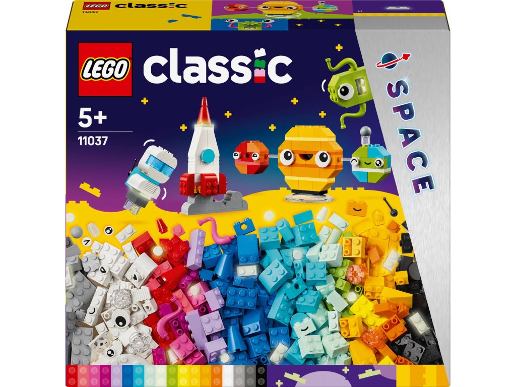 Díky stavebnici LEGO® Classic (11037) Tvořivé planety se malí astronauti a pozorovatelé hvězd od 5 let vydají do vesmíru tvořivého hraní. Snadno sestavitelné modely sluneční soustavy, astronauta a vesmírné rakety jsou ideální pro děti, které chtějí stavět, hrát si a odvážit se na místa, kam se žádný stavitel LEGO ještě nevydal!