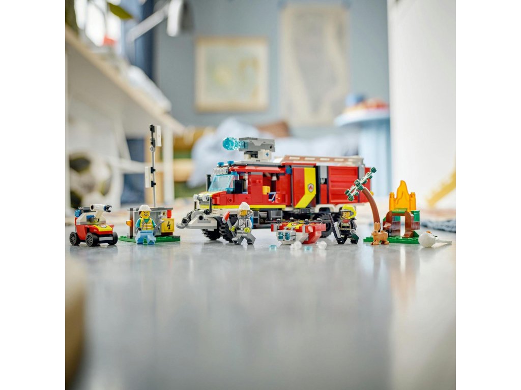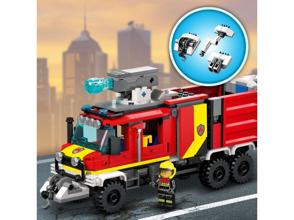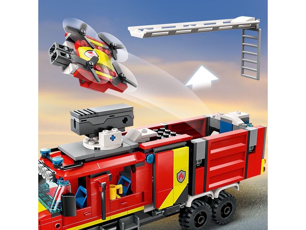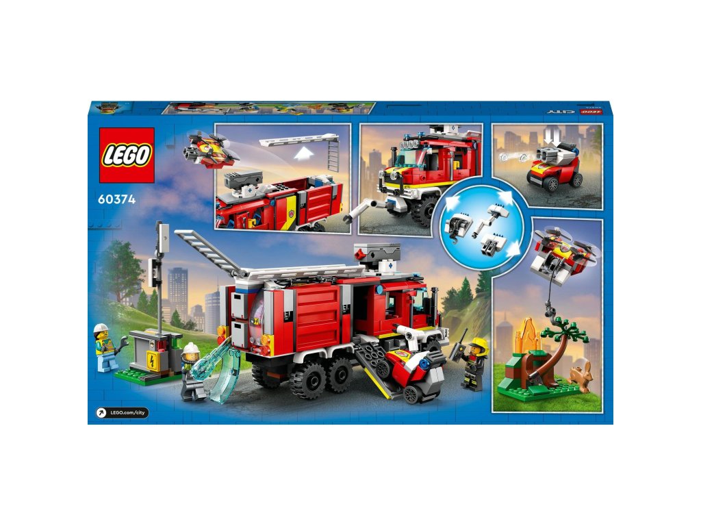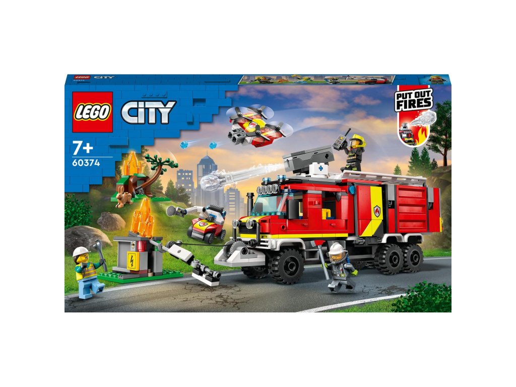 Dodejte hře na hasiče šťávu s velitelským vozem hasičů od LEGO® City (60374). Propracovaný hasičský vůz se pyšní odnímatelným řídicím centrem, hasičským dronem a pozemním dronem. Děti mohou z vozu a dronu střílet dílky vody a uhasit tak požár. Doplňky, které znázorňují lesní a městské prostředí, a 3 minifigurky pak zajistí dlouhé hodiny akční zábavy!