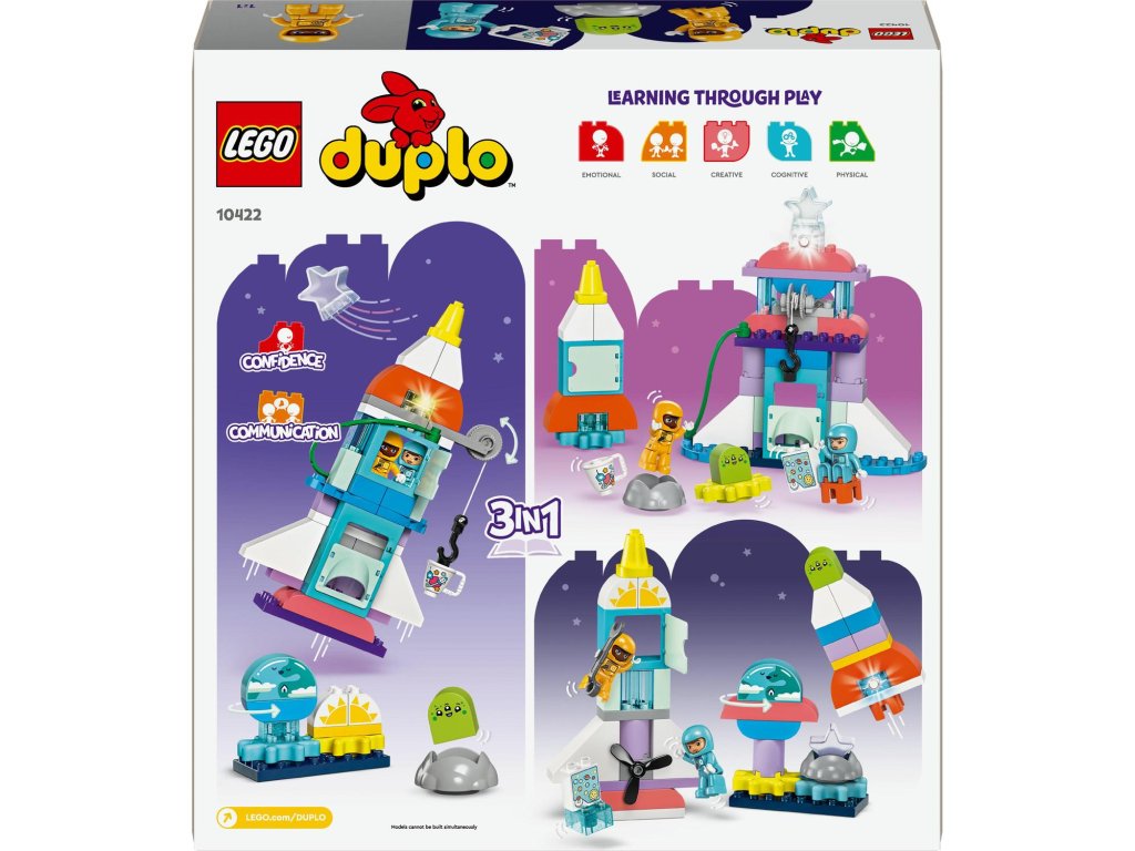 3… 2… 1… start! Vydejte se na akční výpravu se stavebnicí Vesmírné dobrodružství s raketoplánem 3 v 1 (10422). Sada inspiruje malé stavitele od 3 let ke hře na astronauty, kteří prozkoumávají galaxii v modelu raketoplánu, setkávají se s mimozemšťany a poznávají sluneční soustavu.