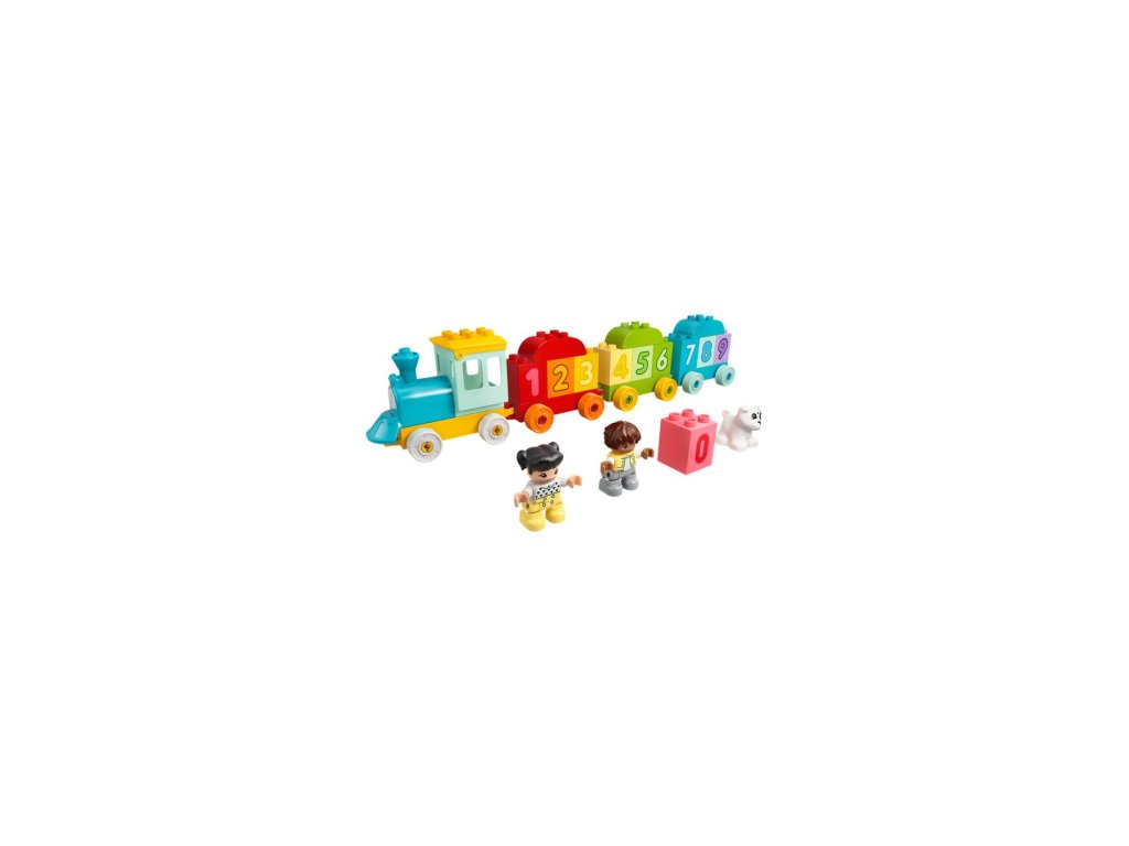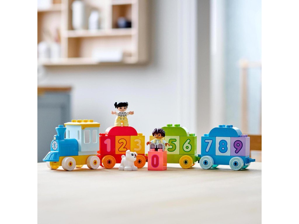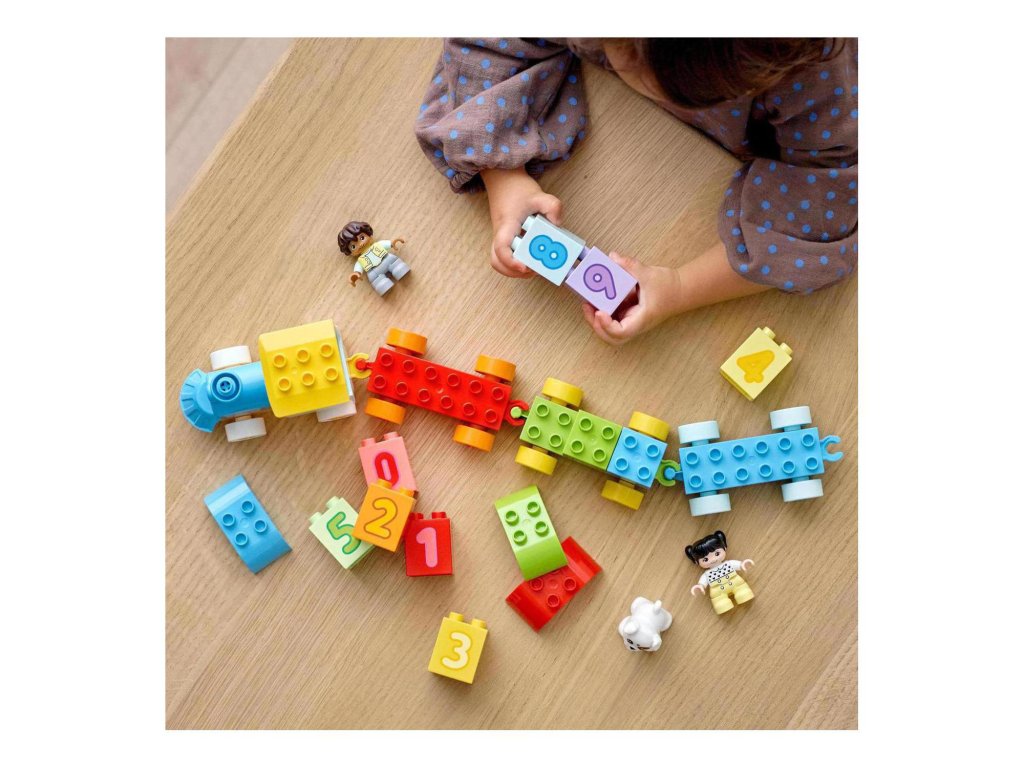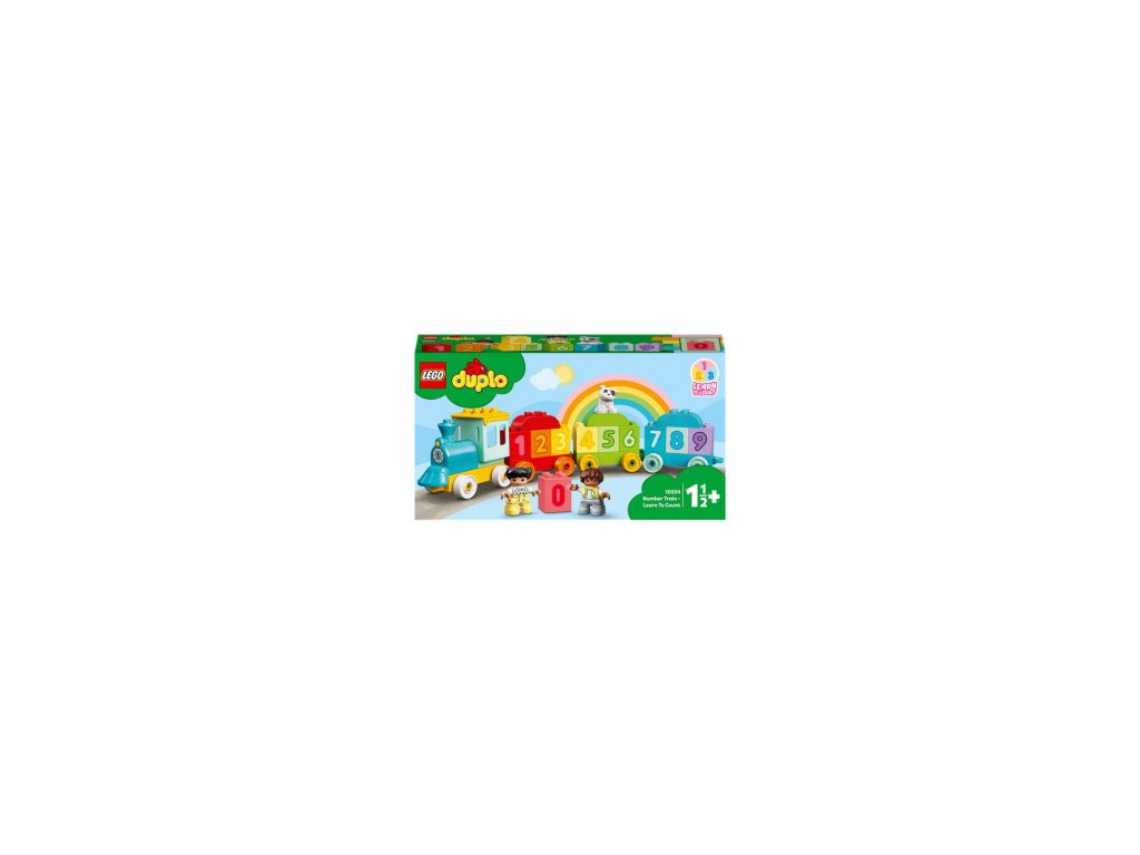 Nenechte si ujet barevný model ze sady LEGO® DUPLO® Vláček s čísly – Učíme se počítat (10954). S 10 očíslovanými kostkami, které mohou děti nakládat a vykládat, stavět na sebe nebo řadit, a DUPLO figurkami dívky, chlapce a pejska nebude brát hraní ani zábava konce.