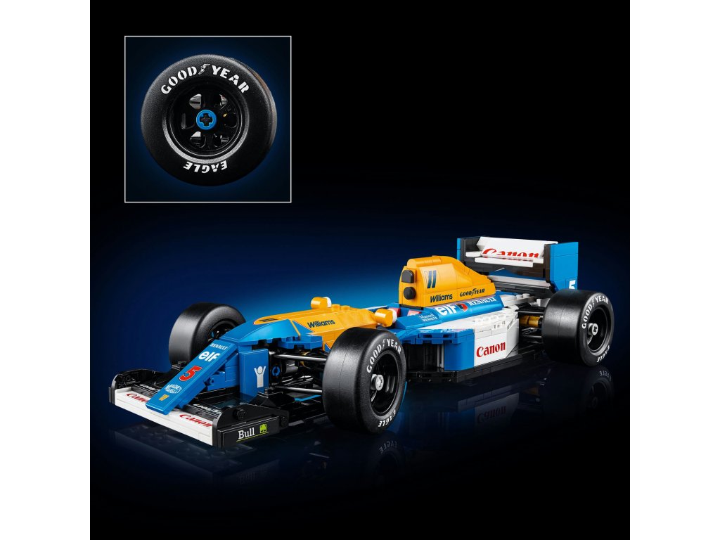 Vlastnosti a funkce – Tento model závodního auta LEGO® Icons Williams Racing FW14B F1® má funkční řízení, široké zadní hladké pneumatiky s tištěným nápisem Goodyear a detailně zpracovaný motor