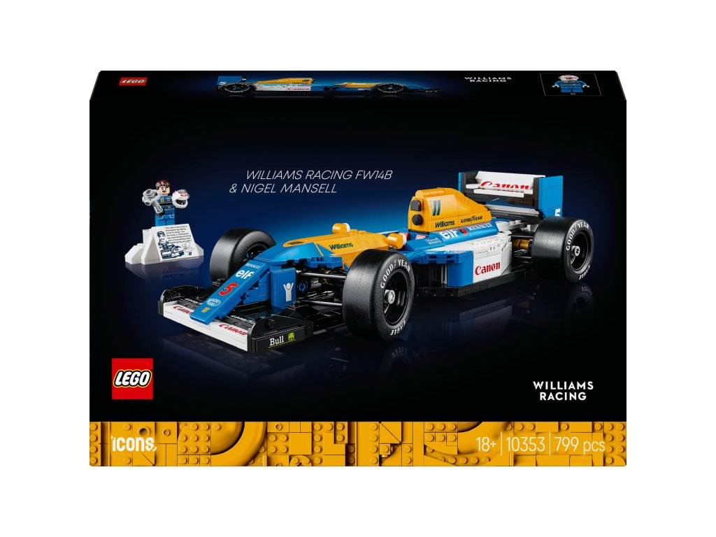 Oslavte historii inovací F1® se stavebnicí LEGO® Icons (10353) Williams Racing FW14B a Nigel Mansell pro dospělé, která poslouží jako skvělý výstavní kousek doma i v kanceláři. Poskládejte si repliku legendárního závodního vozu F1, se kterým v roce 1992 zvítězil Nigel Mansell na závodech Formule 1. Tento prémiový výstavní model s minifigurkou Nigela Mansella bude úchvatnou dekorací a skvělým vánočním nebo narozeninovým dárkem pro fanoušky F1.
