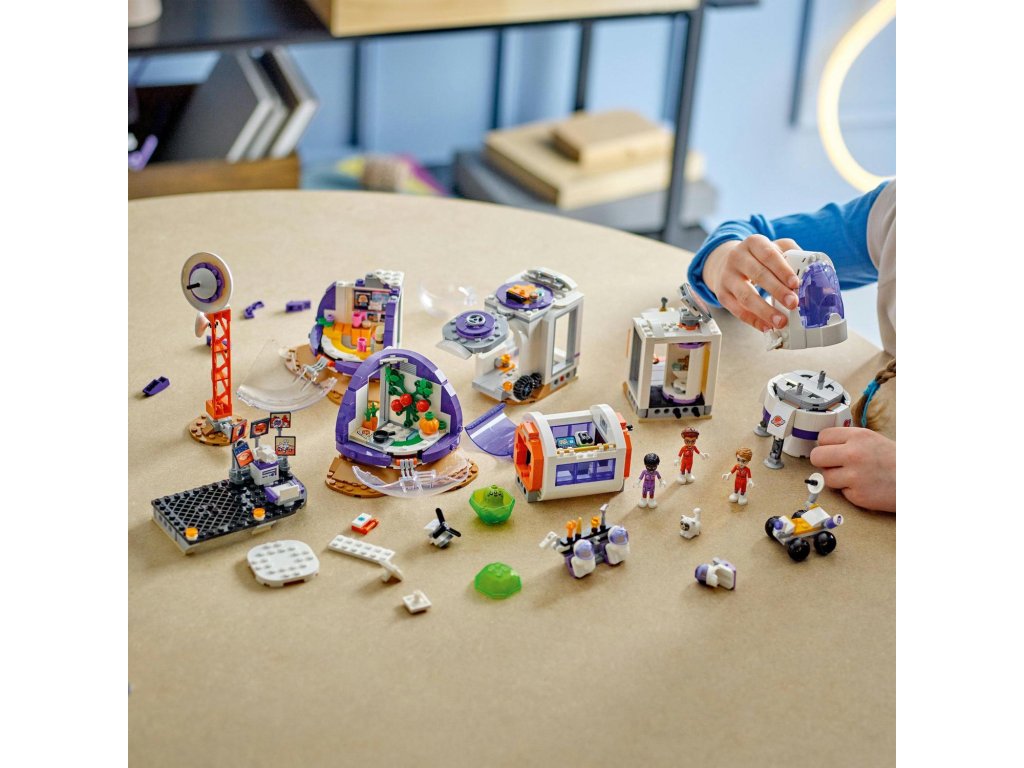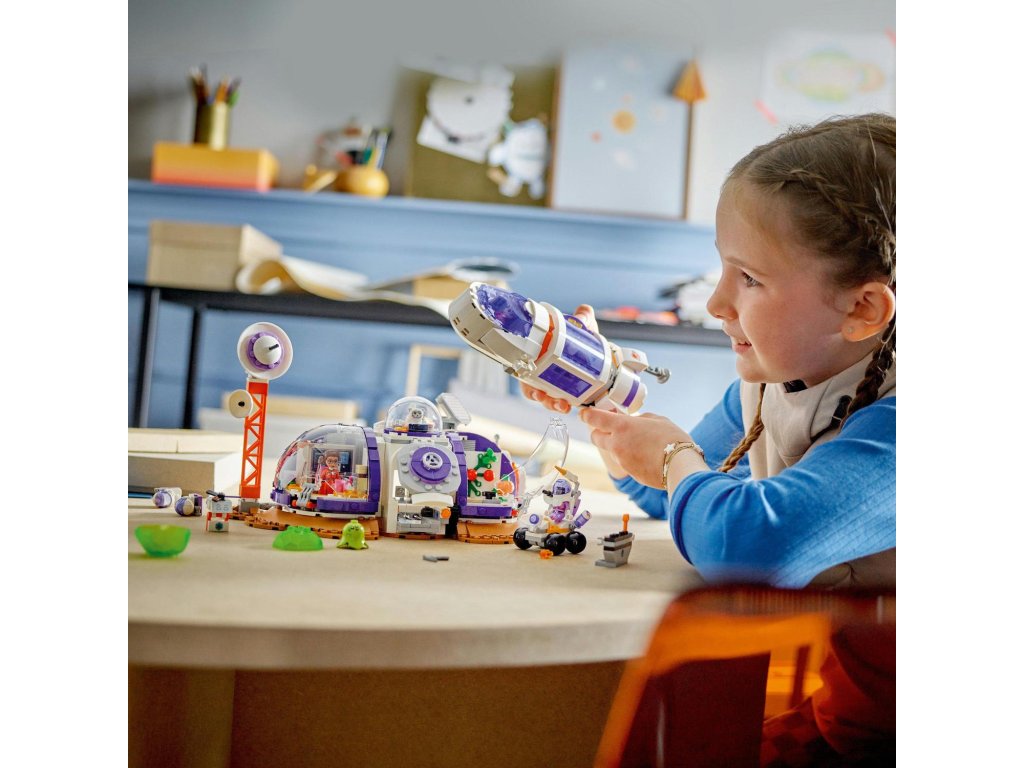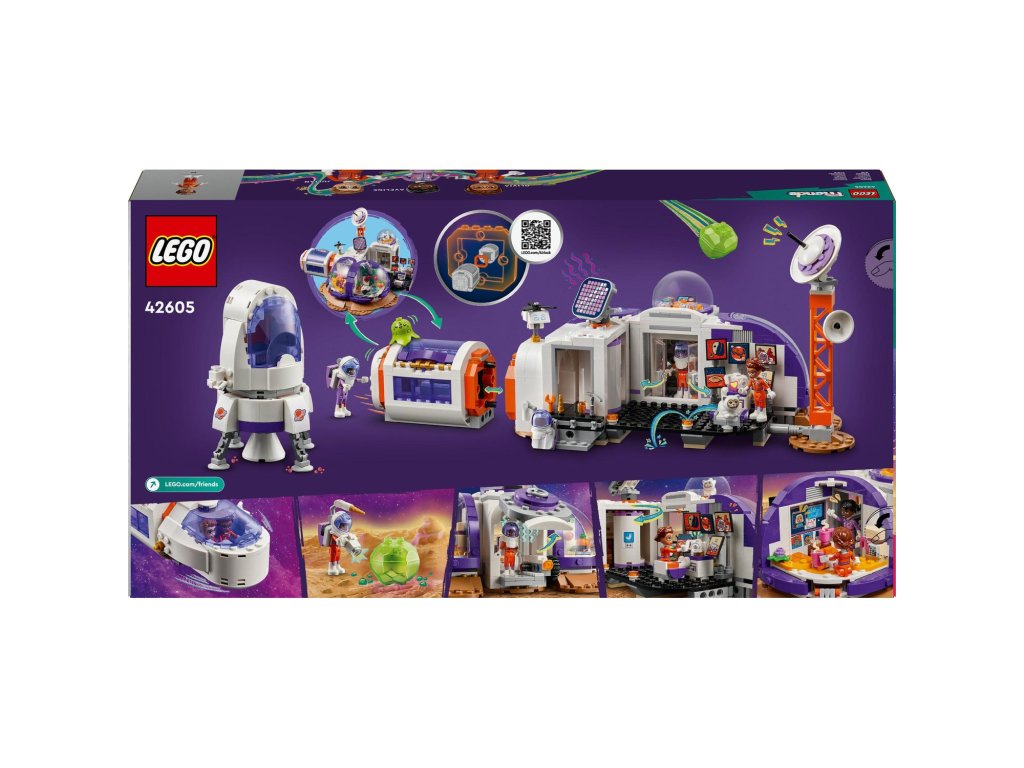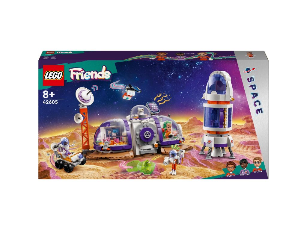 Inspirujte malé průzkumníky k poznávání vesmíru se stavebnicí LEGO® Friends (42605) Základna na Marsu a raketa po děti od 8 let. Součástí stavebnice jsou 3 minipanenky, figurka kočky, raketa, výzkumné vozítko, modulární vědecká základna a vědecké doplňky.