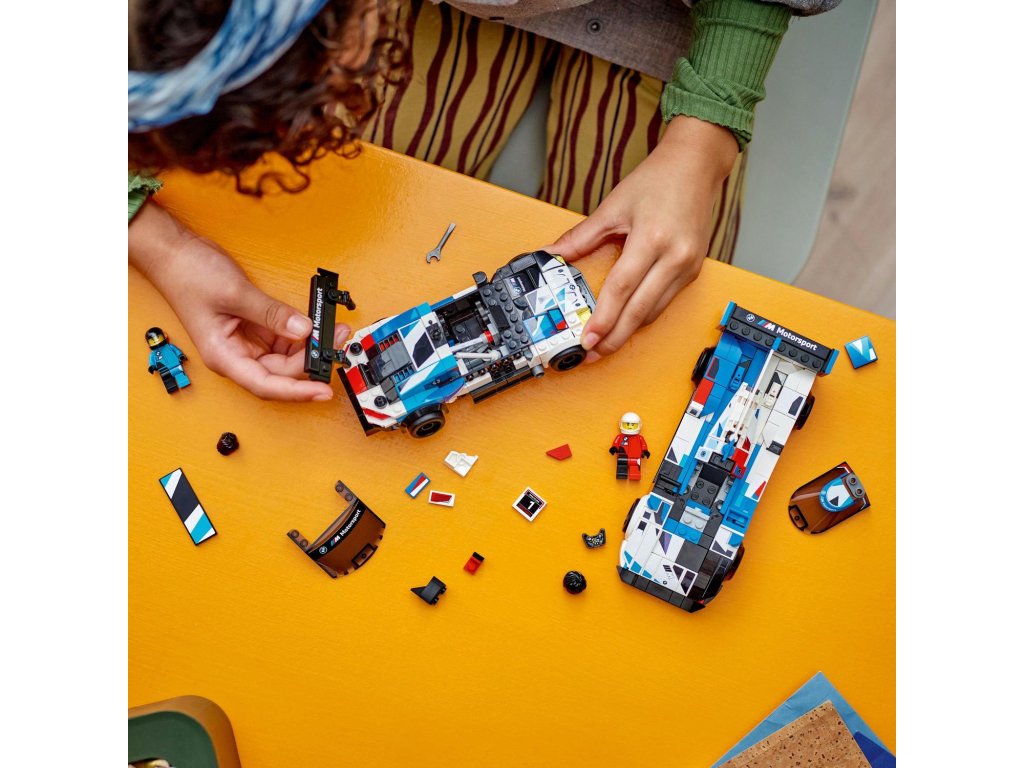 Součástí propracovaných modelů BMW M4 GT3 a BMW M Hybrid V8 jsou autentické detaily, včetně výfuků, difuzorů, zadních křídel, barevného provedení BMW M Motorsport a funkcí interiéru. Obě vozidla mají odnímatelné střechy a minifigurky řidičů, které děti posadí dovnitř a vydají se s nimi na akční závody.