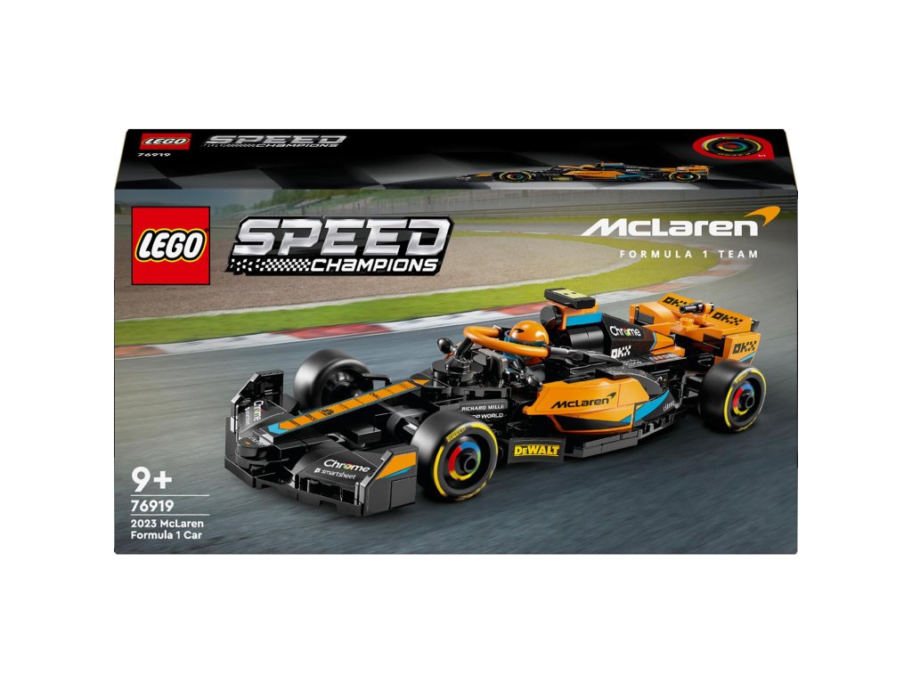 Děti od 9 let se mohou těšit na stavění, vystavování i hraní s modelem LEGO® Speed Champions (76919) Závodní auto McLaren Formule 1 2023. Tento elegantní model auta pro děti se pyšní řadou detailů inspirovaných skutečným vozem, který oslavil 60. výročí McLaren Racing a v roce 2023 se účastnil Mistrovství světa Formule 1.