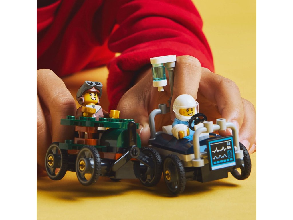 Darujte svému malému milovníkovi závodů od 5 let stavebnici LEGO® City (60458) Závodní balíček: Rozvoz pizzy vs. hasičské auto. Tato zábavná závodní stavebnice obsahuje 2 závodní minikáry a 2 minifigurky. Děti proti sobě postaví šéfkuchaře v minikáře v podobě horkého klínku pizzy a hasiče v minikáře v podobě červeného hasičského auta. Kdo vyhraje? Sedněte za volant a vydejte se na akční městské závody! Tento model závodních vozů LEGO je dodáván s podrobným tištěným návodem na stavění. Děti se můžou těšit na zábavné stavitelské dobrodružství s aplikací LEGO Builder. V ní si lze přibližovat a otáčet modely ve 3D, ukládat stavebnice, sledovat postup a prohlížet další stavebnice. Ve stavebnicích z řady LEGO City na vás čekají parádní vozidla, realistické modely a zábavné postavy, které inspirují k hraní bez hranic. Děti můžou tuto stavebnici minikár kombinovat s dalšími sadami z řady LEGO City (prodávají se samostatně) a rozšířit si tak svět herních možností.