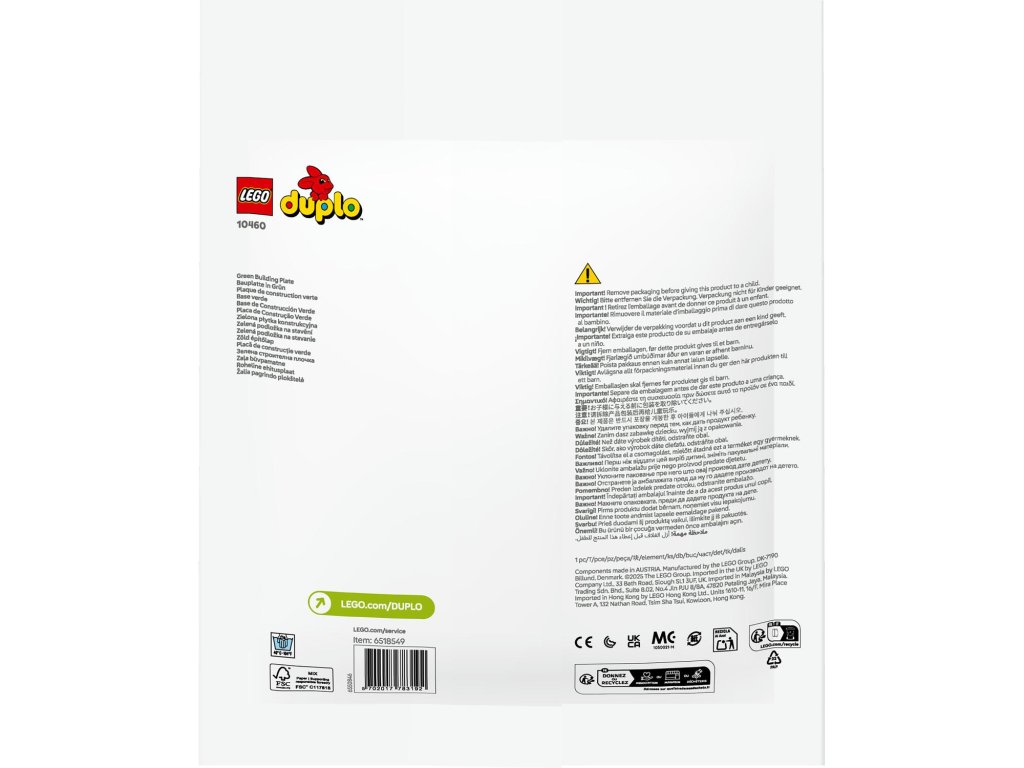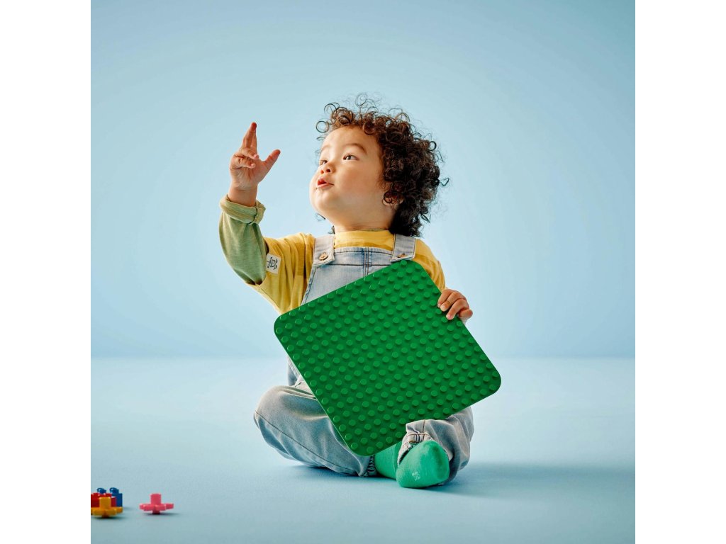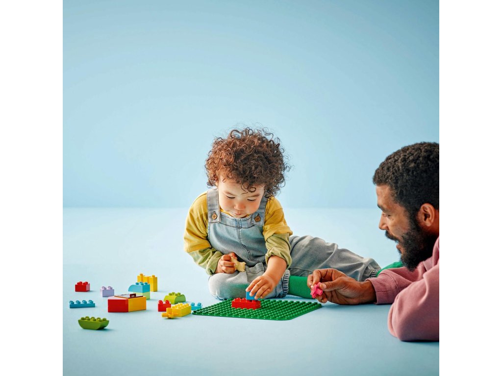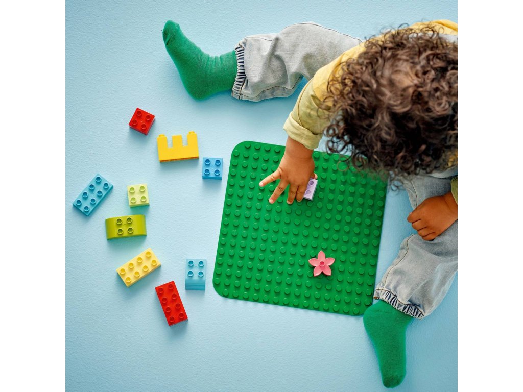 LEGO® DUPLO® (10460) Zelená podložka na stavění má plochu přes 38 cm čtverečních, takže poskytuje ideální herní prostředí pro děti od 18 měsíců, které si na ní mohou stavět, hrát a vystavovat své kreativní výtvory. Tato zelená podložka na stavění s 24x24 výstupky měří 25 cm čtverečních a představuje skvělou pomůcku pro začínající stavitele. Podložka pevně udrží kostky v libovolném úhlu (dokonce i vzhůru nohama!) a otevírá dětem svět nekonečných možností kreativního hraní – od travnatých zahrad přes exotické džungle a úbočí hor až po parádní zelené létající stroje. Až děti dostaví, mohou na podložce přepravovat a vystavovat své výtvory, které se díky ní nerozpadnou. Rodiče mohou se svými ratolestmi sdílet důležité vývojové milníky. Poutavé stavebnice LEGO DUPLO dětem nabízejí pořádnou porci zábavy a spoustu možností pro sebevyjádření a získání sebedůvěry.