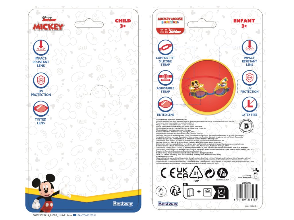 Dětské plavecké brýle v designu Michey Mouse a přátelé. Plně nastavitelný nosní můstek a silikonový pásek na hlavu. Balení: 11,5x21x4cm Věk: 3+