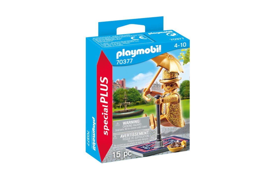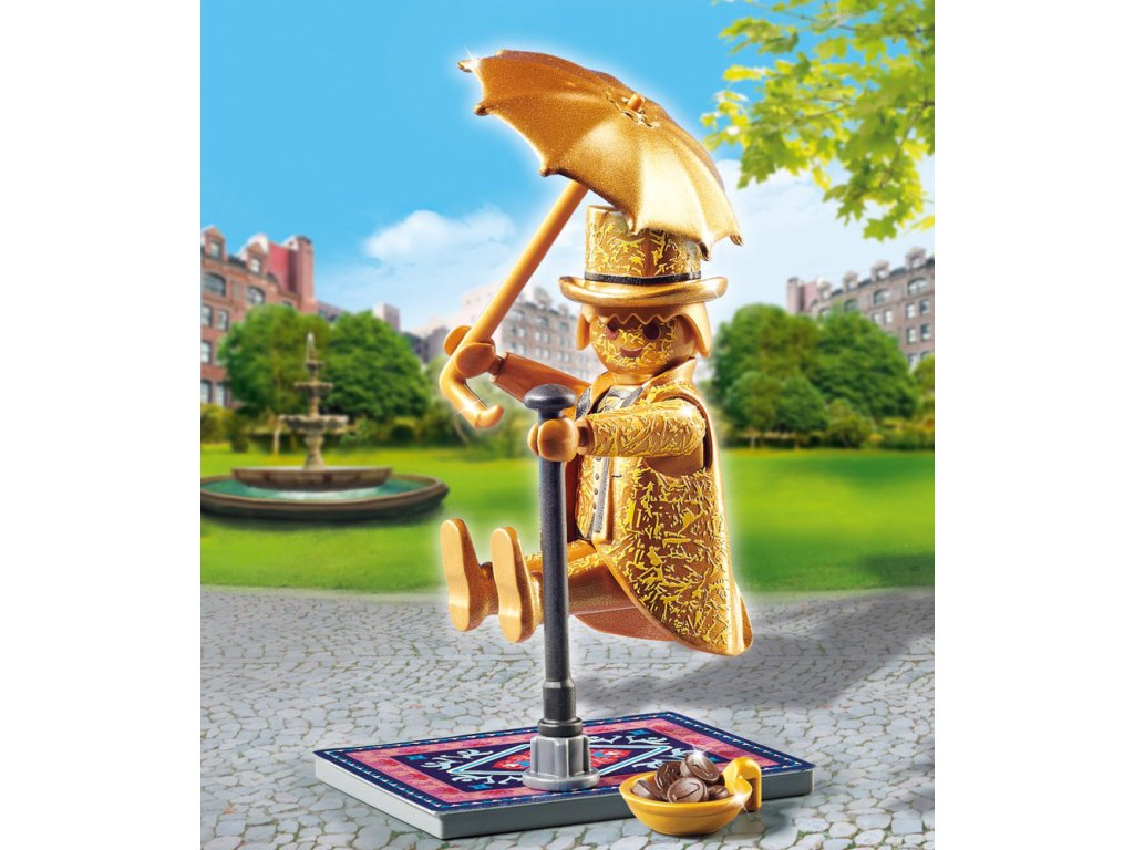 Pouliční umělec v podobě nehybné zlaté sochy, se kterým se kolemjdoucí mohou vyfotit. Rozměry: 12 x 9,3 x 3,8 cm. Věk: 4+