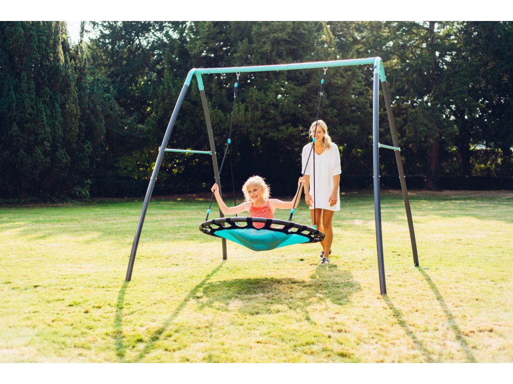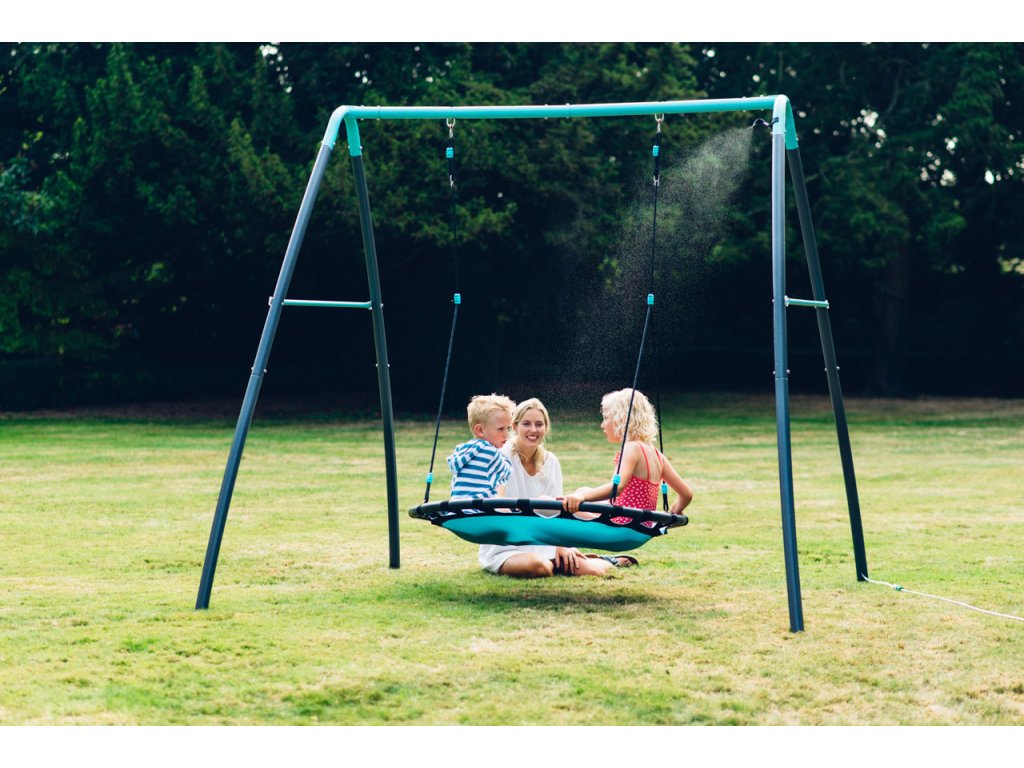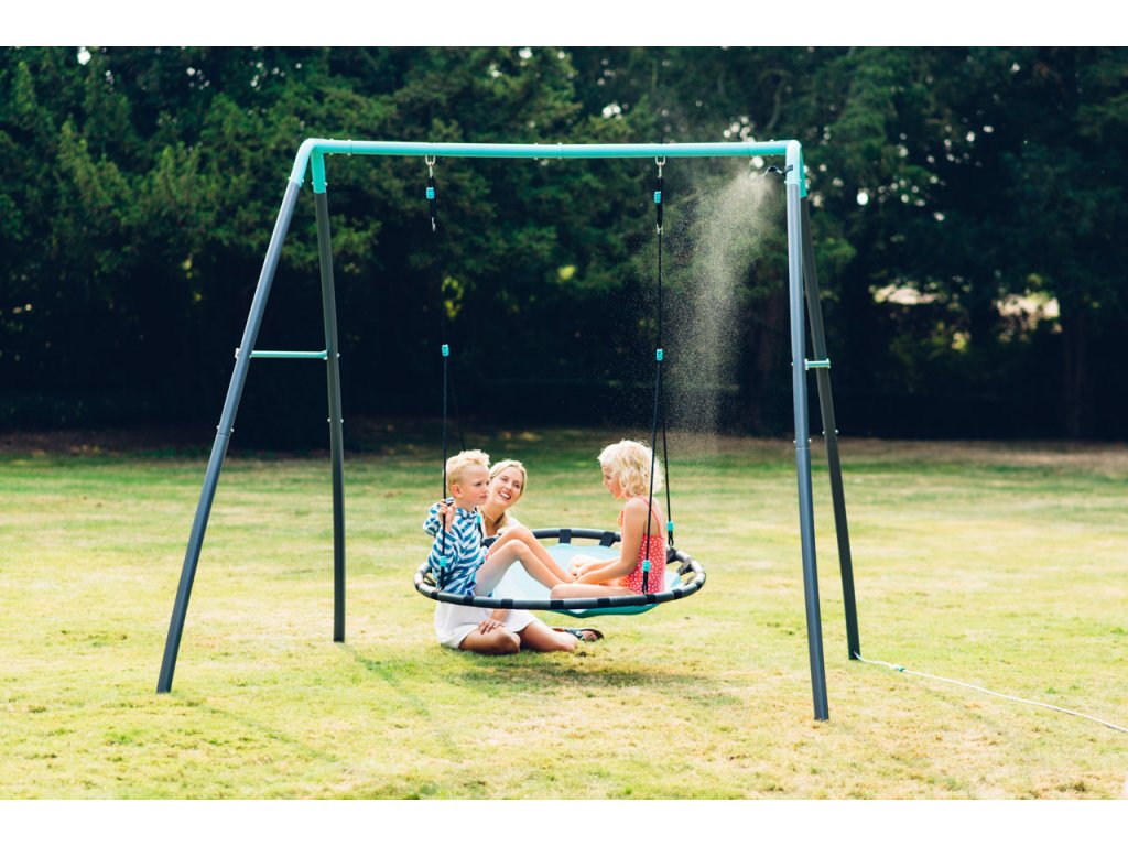 Připojte dětskou houpačku Plum® s kovovou konstrukcí a tryskou na výrobu mlhoviny k zahradní hadici a užijte si osvěžující zábavu v horkých letních dnech. Extra vysoký ocelový rám měřící 2,2 m zaručuje vysokou stabilitu a je vyroben z práškově lakované oceli pozinkované zevnitř i zvenčí, které poskytuje trvalou ochranu proti rzi. Šedá barva rámu s nebesky modrou vytváří nádhernou barevnou kombinaci. Pohodlné houpací hnízdo poskytuje dostatek místa pro dvě malé děti nebo dospělou osobu. Rozměr sestavené houpačky cca: 218 x 215 x 238 cm. Maximální nosnost uživatele: 100 kg. Pouze pro venkovní použití pod dohledem dospělé osoby. Nevhodné pro děti mladší 36 měsíců – nebezpečí pádu. Rozměr balení: 120 x 39 x 22 cm. Věk: 3+