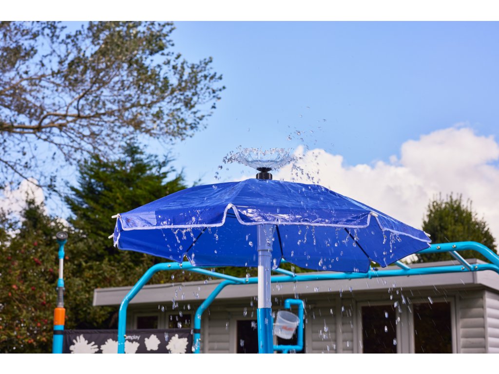 Deštníková fontána přináší vzrušení z vodního parku přímo na váš dvorek! Připojte hadici a nechte vodu téct. Tento interaktivní vodní prvek navržený pro nekonečnou venkovní zábavu je ideální pro děti, které si mohou užít v horkých slunečných dnech. Vždy se doporučuje dohled dospělých, aby byla zajištěna bezpečná a příjemná hra pro mladé dobrodruhy. Rozměr produktu: 70 x 70 x 165 cm. Balení: 50x12,5x14x5cm/2kg. Věk: 3+