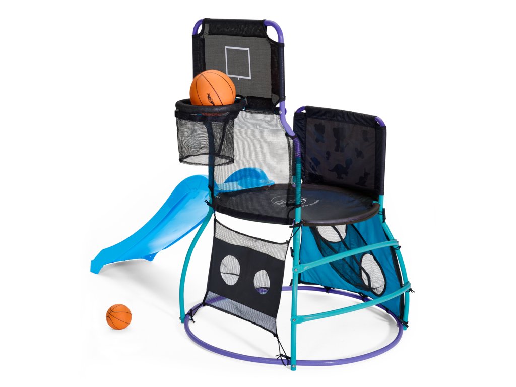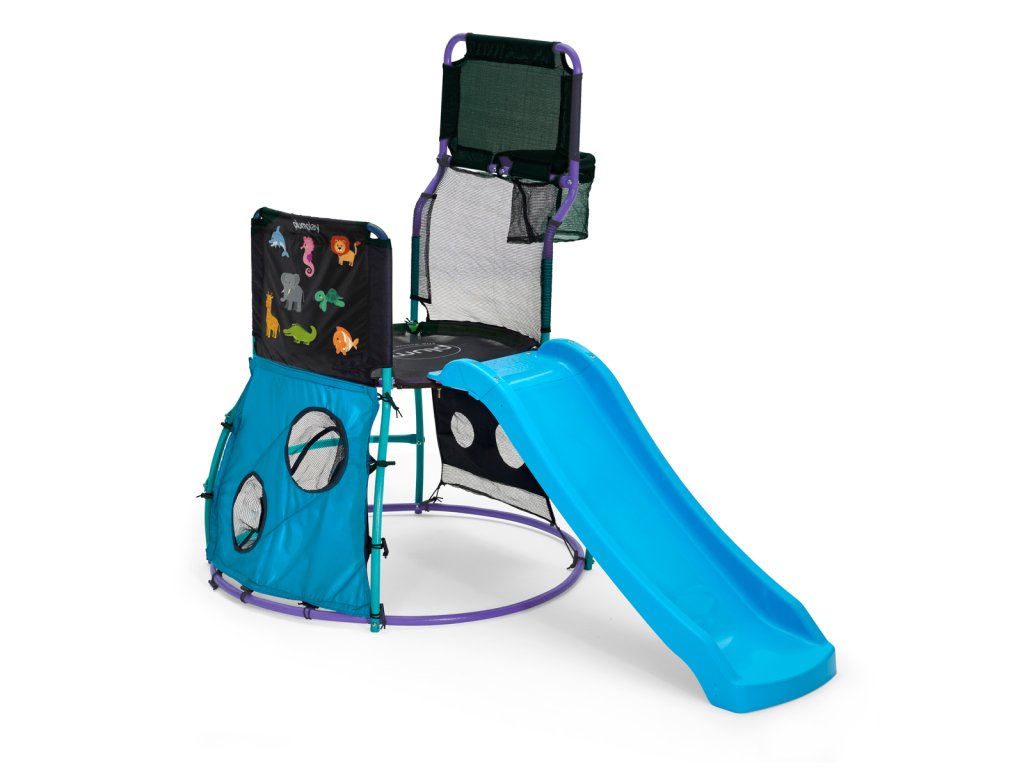Zahradní multifunkční centrum se skluzavkou 6v1. Plum Play My First Activity Tower podporuje zdravou a aktivní hru, pomáhá rozvíjet jemnou motoriku a zároveň rozvíjí fantazii. Nabízí nespočet aktivit pro vaše děti. Sledujte, jak děti vylezou po žebříku na vyvýšenou plošinu, odkud se budou moci vydat na cestu po skluzavce. Po straně se nachází látková kouzelná stěna se zvířátky, která změní barvu při kontaktu s vodou. Potenciální profesionální basketbalisté budou nadšeni z vestavěné basketballové obruče a tabule, doplněné basketbalovým míčem a pumpou. Spodní část hracího centra se dá dobře využít pro hru na schovávanou. Kovový rám konstrukce je odolný vůči povětrnostním vlivům, pozinkovaný a práškově lakovaný pro dlouhou životnost. Maximální nosnost 25 kg. Rozměry sestaveného produktu: 137 x 182 x 116 cm. Délka skluzavky: 121,92 cm. Hmotnost produktu: 14 kg. Rozměry balení: 42 x 120 x 16 cm. Doporučený věk: 18 m+
