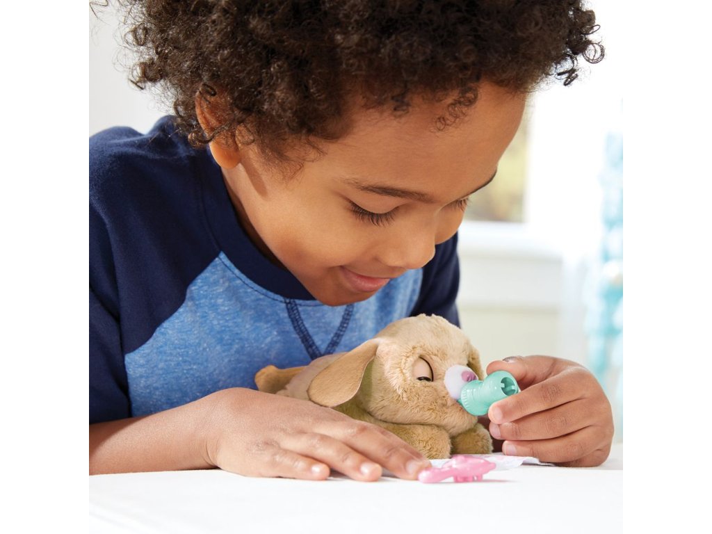 FurReals Newborn baby pets jsou roztomilá interaktivní zvířátka, o která se budete chtít starat znovu a znovu. Krmte zvířátko lahvičkou, uklidňujte ho dudlíkem, houpejte ho v náručí, pusinkujte ho a česejte mu srst. Péči o toto výjimečné zvířecí miminko si zamilujete. Zvířátka vydávají nejrůznější nádherné zvuky - stiskněte tlačítko na zádech zvířátka. Každé zvířátko je navíc vybaveno barevným oblečením.