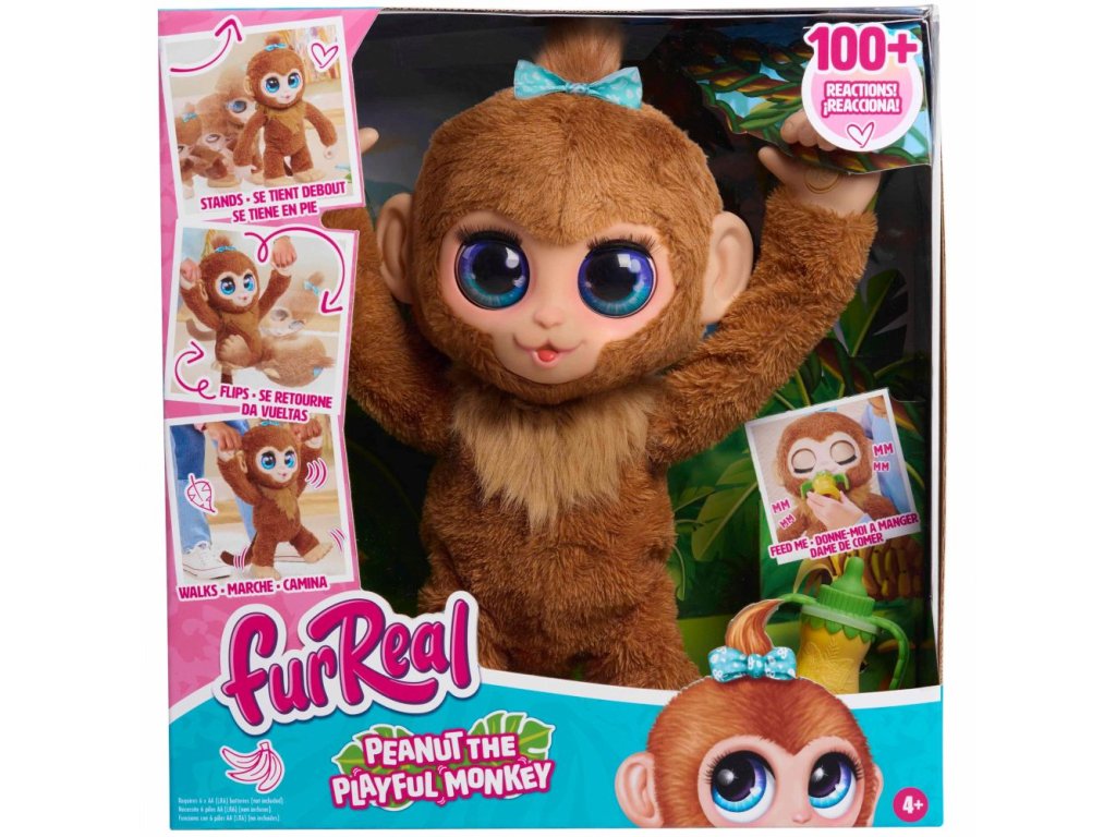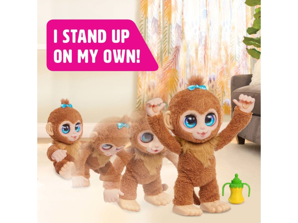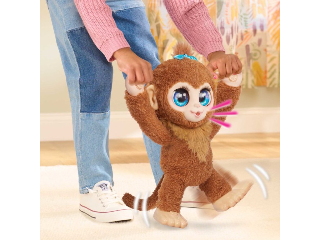 Připravte se, že se zamilujete do této rozkošně a roztomilé interaktivní opičky, která je jako živá! Opička Peanut má až 100 kombinací zvuků a pohybů. Opička je úžasně interaktivní, reaguje na dotek i na zvuk. Součástí balení je láhev na pití a hřeben na česání.
