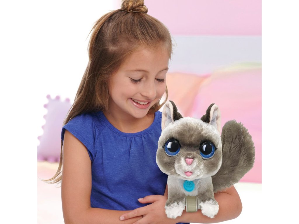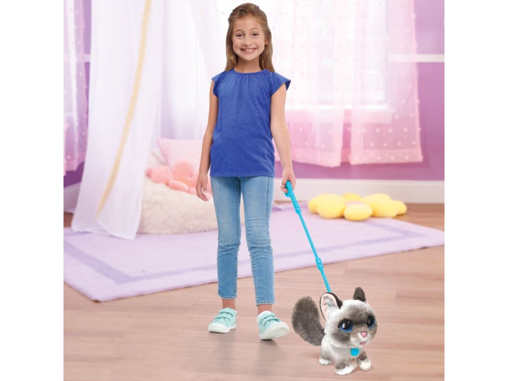 Interaktivní koťátko na vodítku je skvělá hračka ze série FurReal. Kotě bude pro vaše dítě skvělým parťákem. Vše, co musíte udělat, je vzít ho domů a dát mu trochu lásky. Tento interaktivní mazlíček vypadá velmi podobně jako skutečná kočička. Je vyrobená z plyše, který je velmi příjemný na dotek. Koťátko se rádo mazlí, má pohyblivou hlavu a mňouká a přede. Celá sada obsahuje plastové vodítko, se kterým můžete koťátko vzít na procházku.