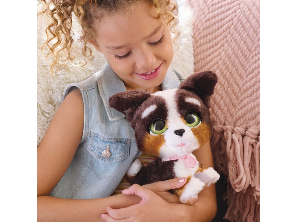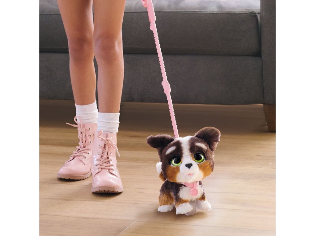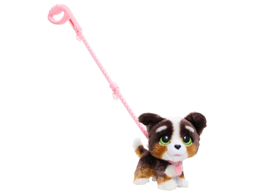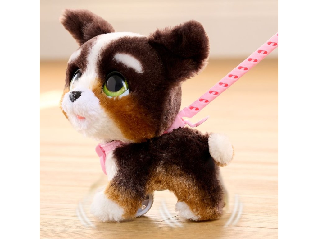 Interaktivní pes Bernadrýn na vodítku je skvělá hračka ze série FurReal. Pes bude pro vaše dítě skvělým parťákem. Vše, co musíte udělat, je vzít ho domů a dát mu trochu lásky. Tento interaktivní mazlíček vypadá velmi podobně jako skutečný pejsek. Je vyrobený z plyše, který je velmi příjemný na dotek. Bernardýn se rád mazlí, má pohyblivou hlavu a štěká. Také umí vrtět ocasem. Celá sada obsahuje plastové vodítko, se kterým můžete pejska vzít na procházku.