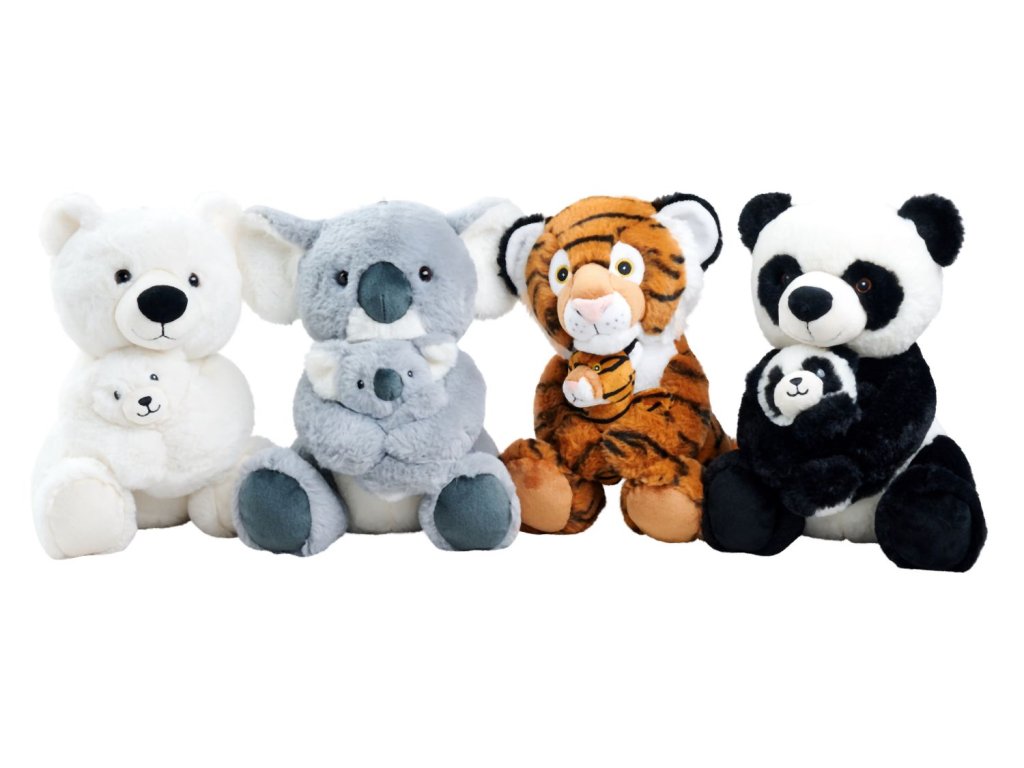 Plyšové zvířátko s mládětem sedící, výška 28 cm. 4 provedení - panda, koala, tygr nebo lední medvěd.