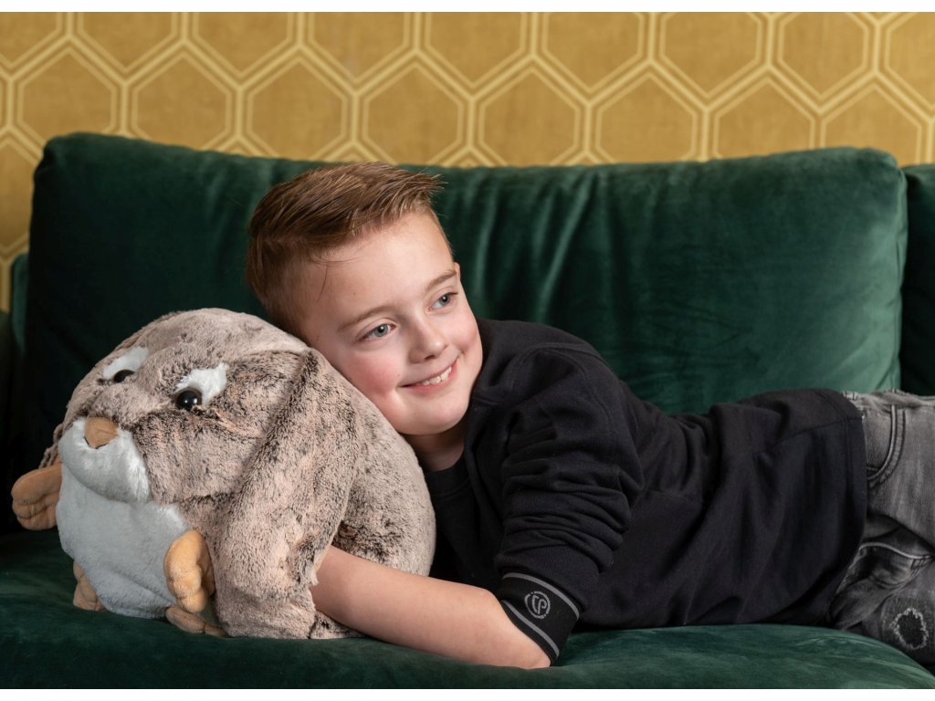 Měkoučký polštář, rukávník na ohřátí rukou nebo věrný kamarád plyšák? To vše najdete v jednom. Tento nápaditý polštář se zvířátkem se stane velmi rychle nejlepším kamarádem každého dítěte. Navíc je pro děti opravdu ideálním společníkem na cestách v autě, letadle, vlaku, ale i krásným dekoračním doplňkem každého dětského pokojíku. Každý polštář z této řady slouží jako ohřívač rukou, protože má po stranách 2 otvory. Stačí jen vložit ruce dovnitř a za chvilku jsou teplé. Navíc zmíněné boční otvory mohou sloužit i jako dokonalá tajná skrýš, kam se dá ledacos schovat, což děti přímo milují. Tato produktová řada nabízí polštáře s mnoha motivy zvířátek a několik i s motivem ovoce, takže každý malý člen rodiny může mít svého oblíbeného mazlíčka. V nabídce Cozy Noxxiez najdete v mnoha případech i obří hřejivý pantofel nebo deku s kapucí a kapsami s motivem stejného zvířátka a můžete mít tak celou zahřívací sadu ve stejném designu. V roce 2023 přibyly v nabídce, jako úplná novinka, i televizní mikinové deky pro děti ve věku 3 - 6 let a 7 - 12 let, které také tematicky patří k některým kolekcím. Stručný popis a doplňující informace:• Super měkký a příjemný materiál• Slouží jako rukávník k ohřívání rukou (po stranách jsou dva otvory)• Ideální pro cestování• Velikost 35 cm x 35 cm x 35 cm • Materiál: 100% polyester• Ruční praní, sušit vyvěšením• Věk: certifikováno od 0 měsíců• Navrženo v Nizozemí
