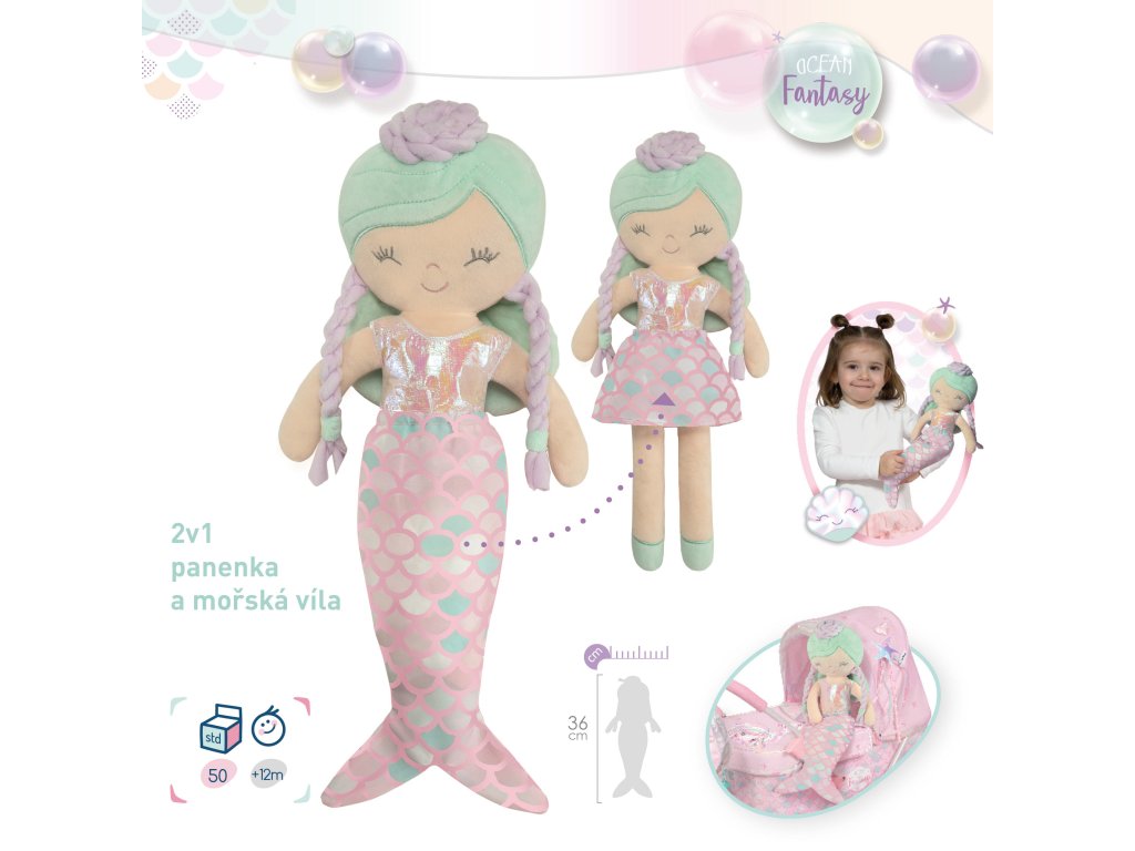 DeCuevas 20141 Plyšová panenka 2v1 OCEAN FANTASY - 36 cm
