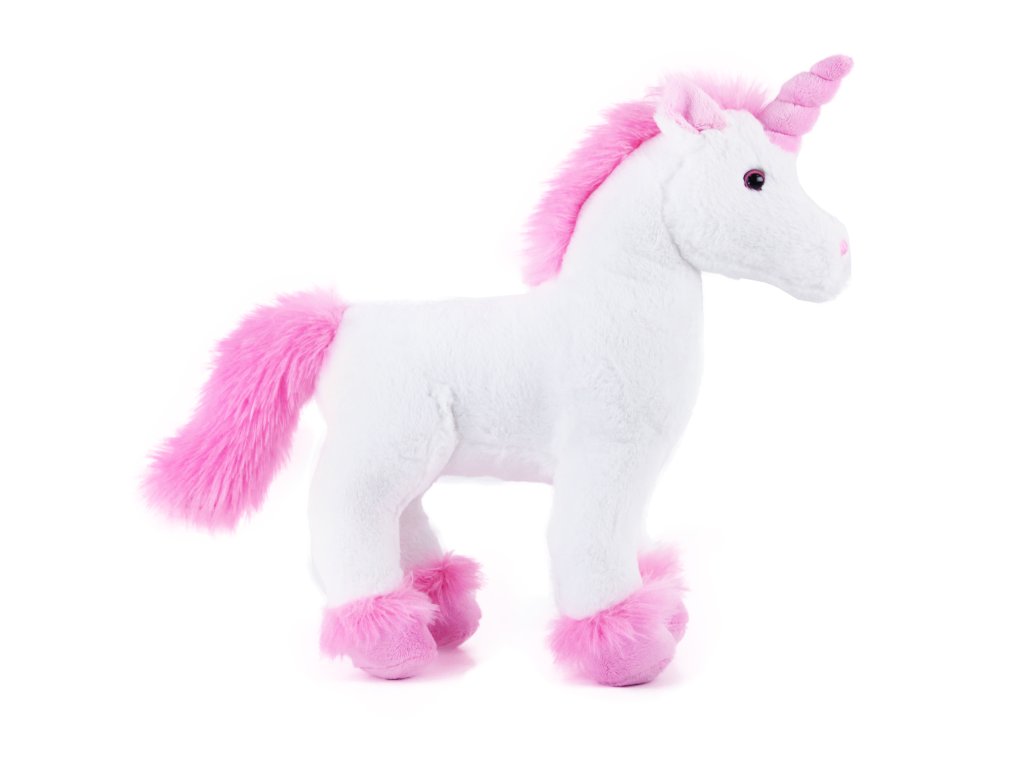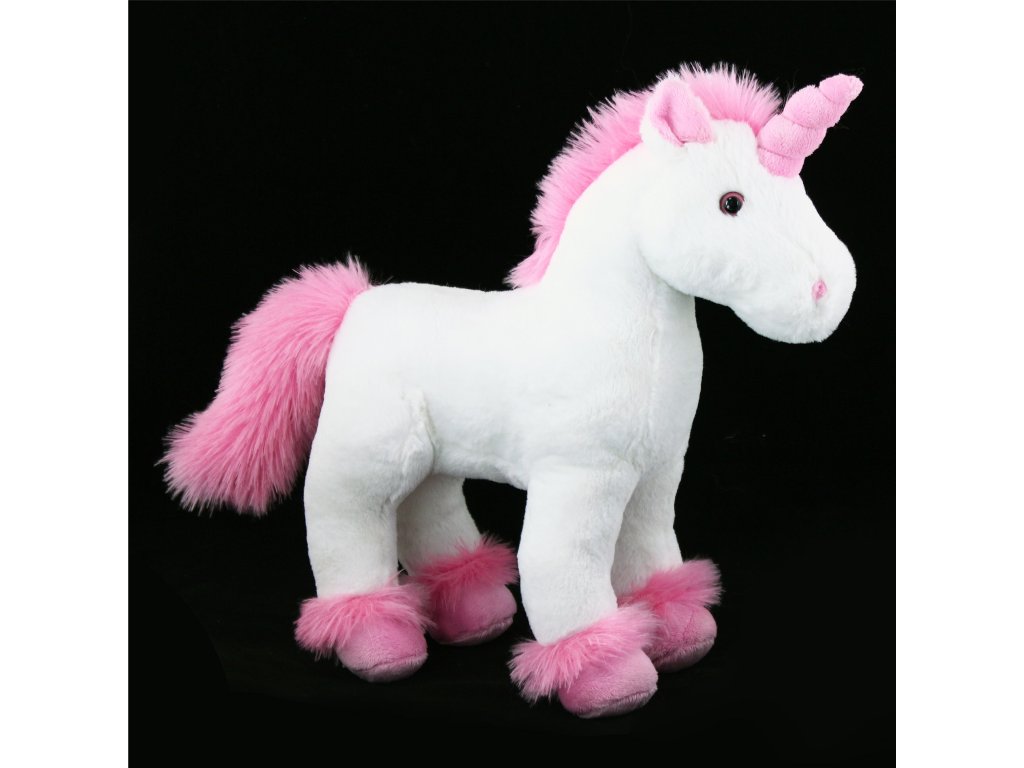 Roztomilý plyšový bílý jednorožec s krásnou růžovou hřívou a rohem ve velikosti 32 cm. Je vyroben z kvalitní jemné plyše. Tento plyšový kousek je ideálním dárkem!