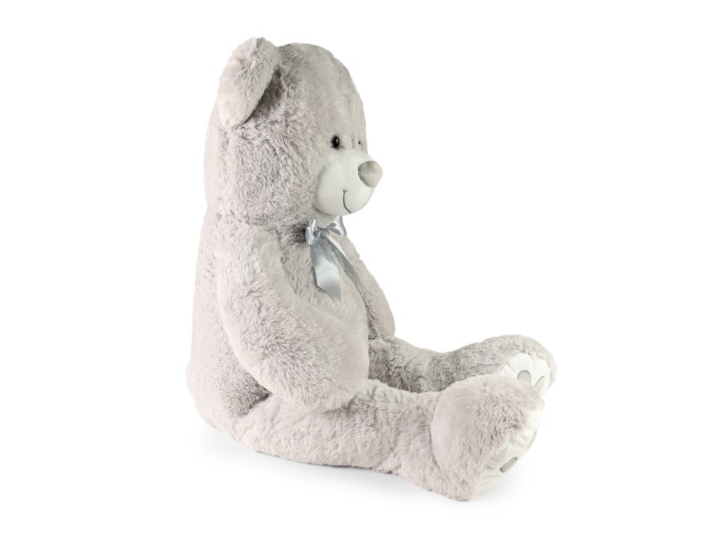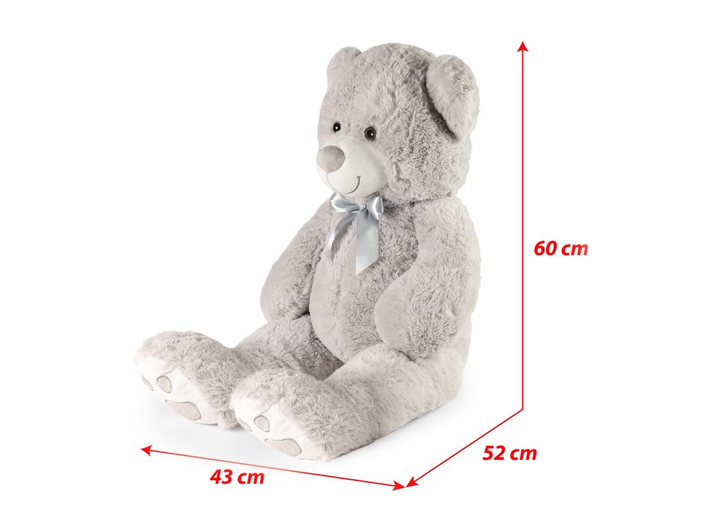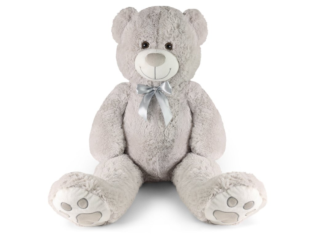Plyšový méďa nesmí chybět v žádném dětském pokojíčku! Medvěd je vyroben z kvalitní heboučké plyše, má šedou barvu a navíc je zdoben stylovou mašlí. Tento plyšový kousek je ideálním dárkem pro malé i velké! Celková délka je cca 100 cm. Součástí je papírová visačka ve tvaru srdíčka, na kterou můžete napsat věnování. Vhodné pro děti od 0 let.