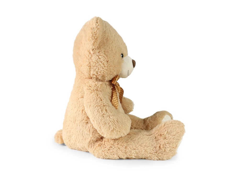 Plyšový medvěd by rozhodně neměl chybět v žádném dětském pokojíčku! Medvěd ve velikosti 78 cm je vyroben z kvalitní heboučké plyše, má světle hnědou barvu a krk mu zdobí hnědá saténová mašle. Tento plyšový kousek je ideálním dárkem pro malé i velké! Součástí je papírová visačka ve tvaru srdíčka, na kterou můžete napsat věnování. Vhodné pro děti od 0 let.
