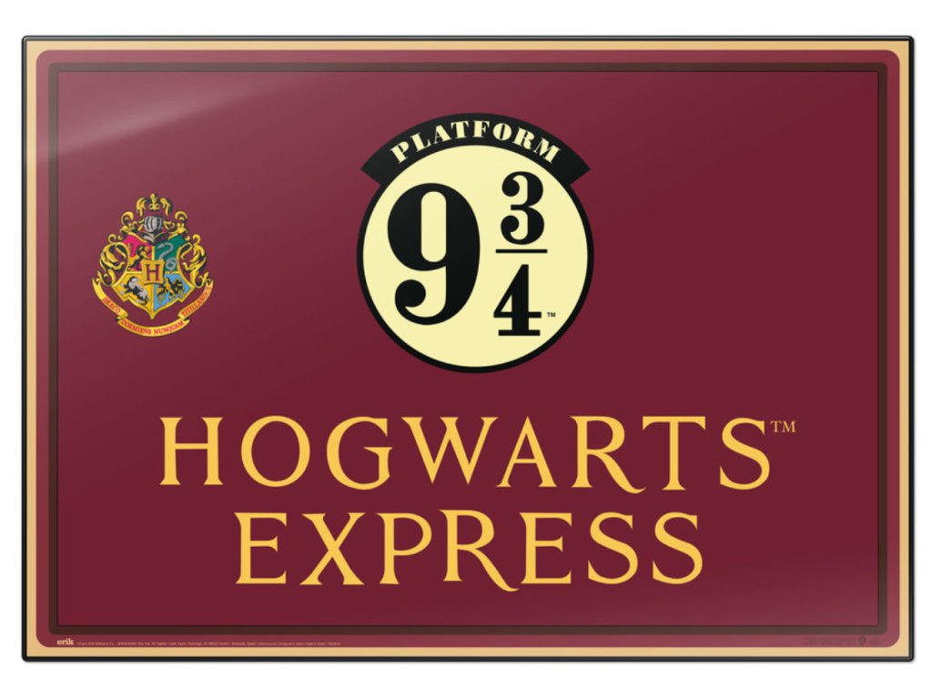 Atraktivní a praktická podložka na stůl inspirovaná nástupištěm 9 a 3/4 (Platform 9 and 3/4) z kouzelnické ságy Harry Potter pro menšího i většího školáka.