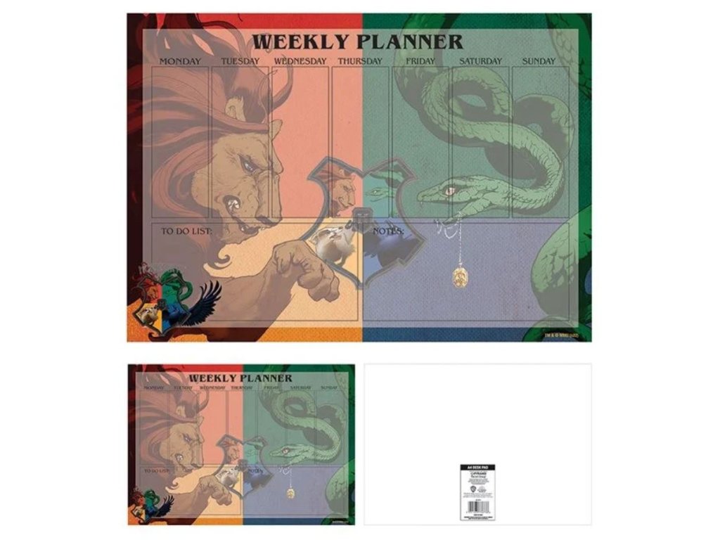 Stolní týdenní plánovací blok s 54 listy na 12 měsíců, inspirovaný rozkolem kolejí ze školy čar a kouzel v Bradavicích z Harryho Pottera. Vhodné také jako podložka na psací stůl.