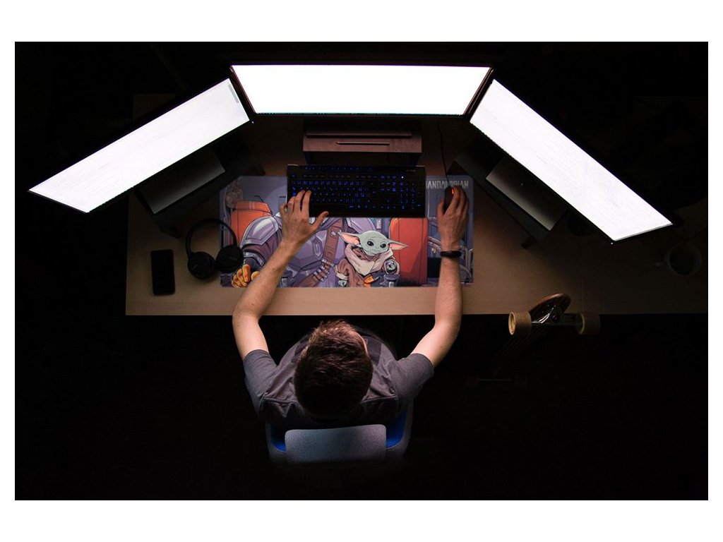 Praktická rolovací herní podložka s motivem filmu Mandalorian ze ságy Hvězdné války.