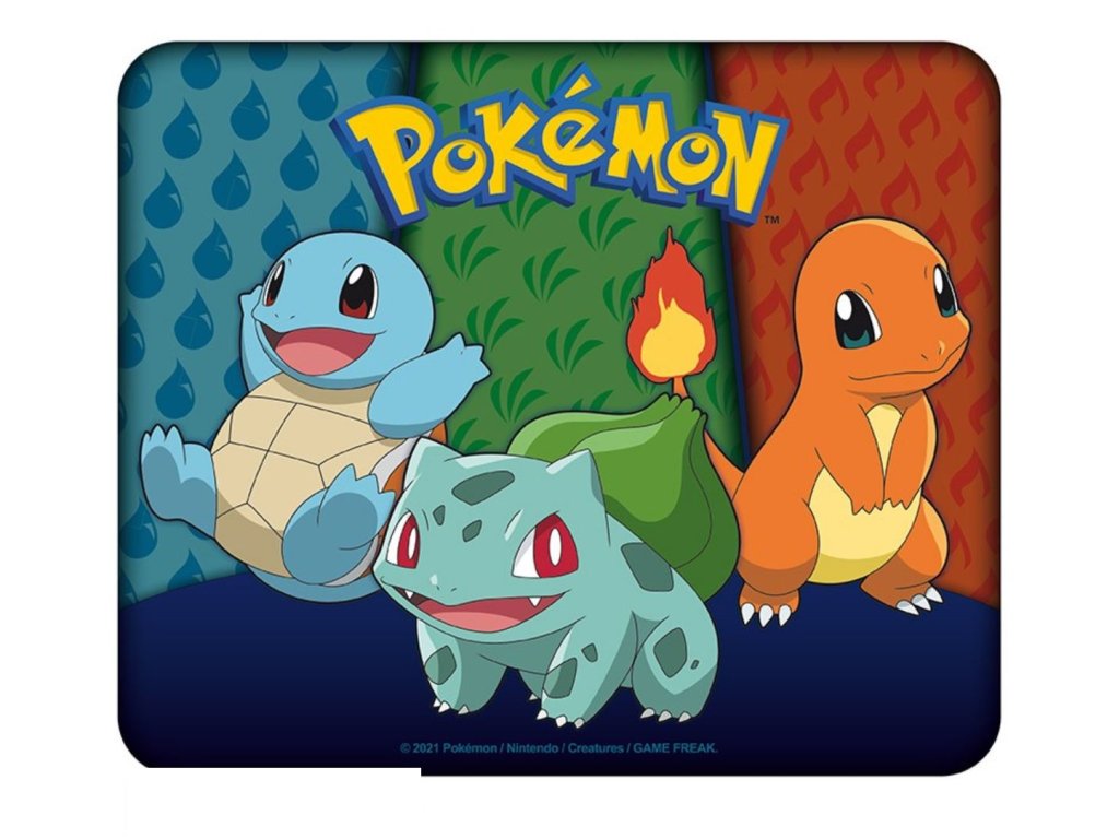 Vaše pokémonské dobrodružství začíná a vy se nemůžete rozhodnout mezi Bulbasaurem, Squirtlem nebo Charmanderem? Nepropadejte panice, řekněte ne profesoru Oakovi a vyberte si všechny tři! Podložka pod myš s protiskluzovou základnou, nápisem a s grafikou pokémonu z japonského seriálu Pokémon je nutností každého fanouška a nesmí tak chybět na žádném herním, či pracovním stole.
