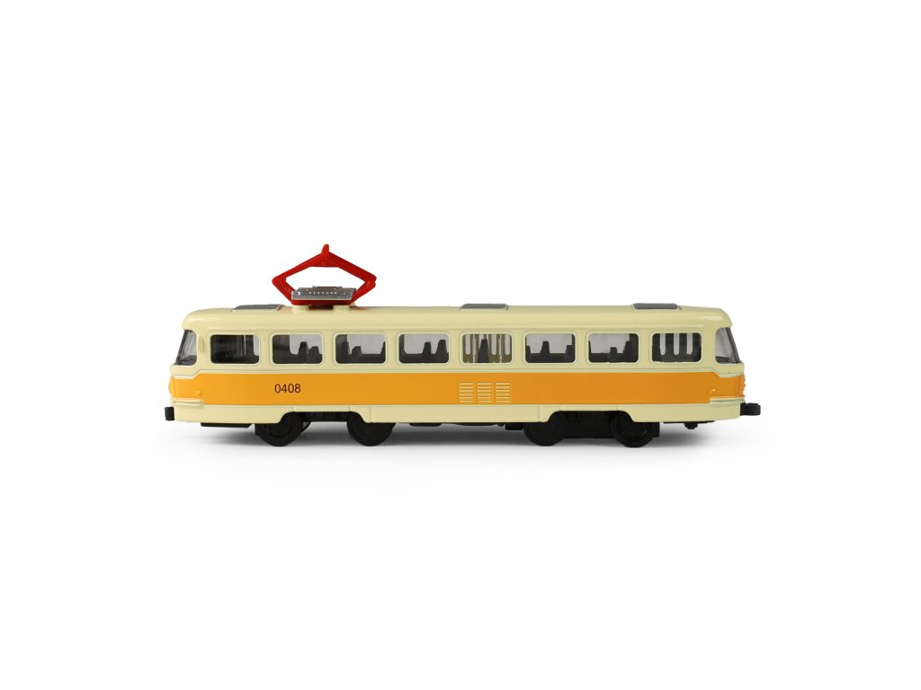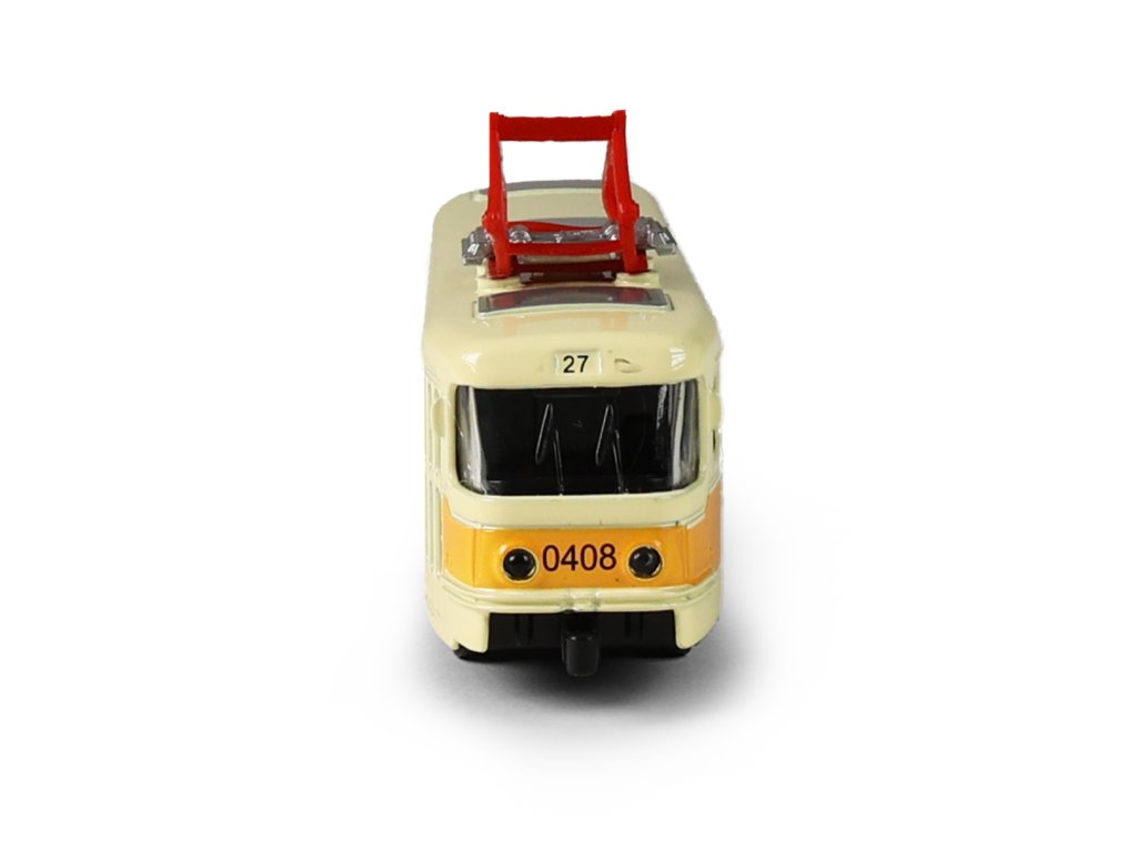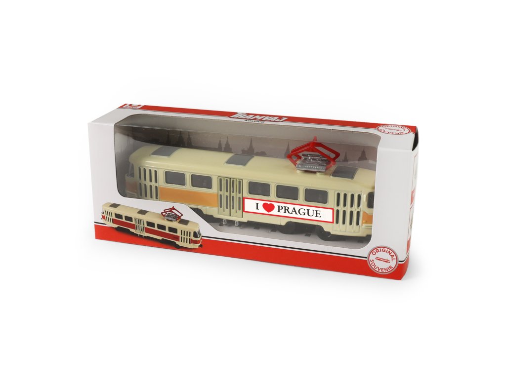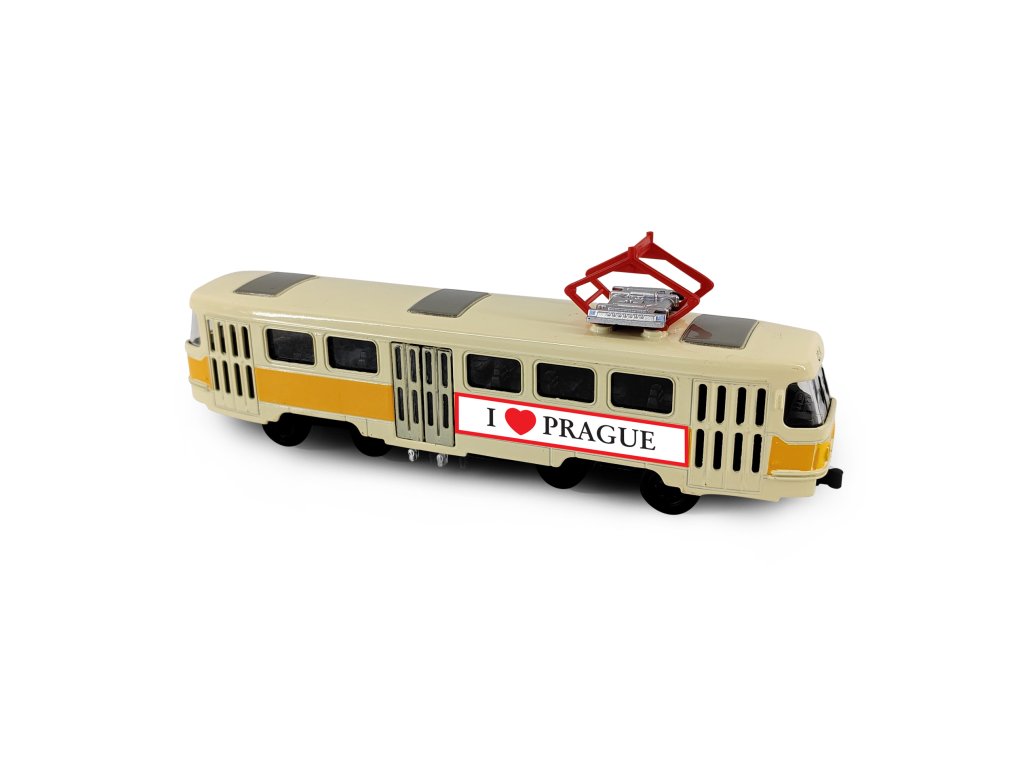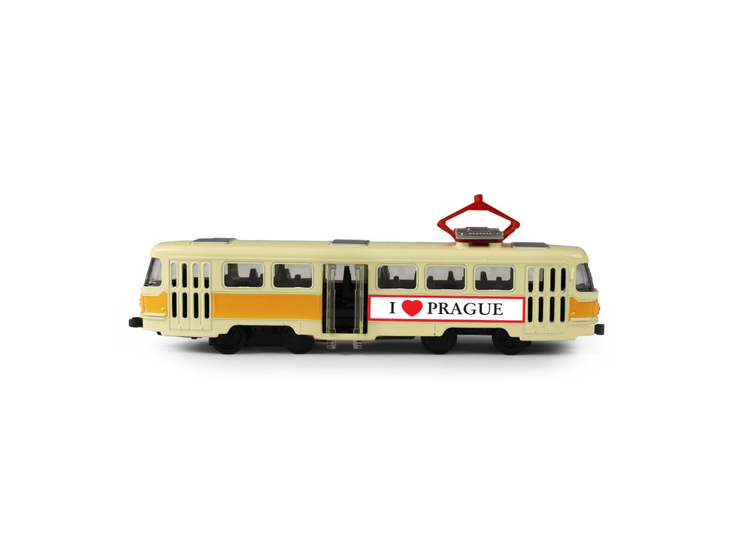 Kovová česká retro tramvaj žlutá 16 cm PRAGUE otevírací dveře
