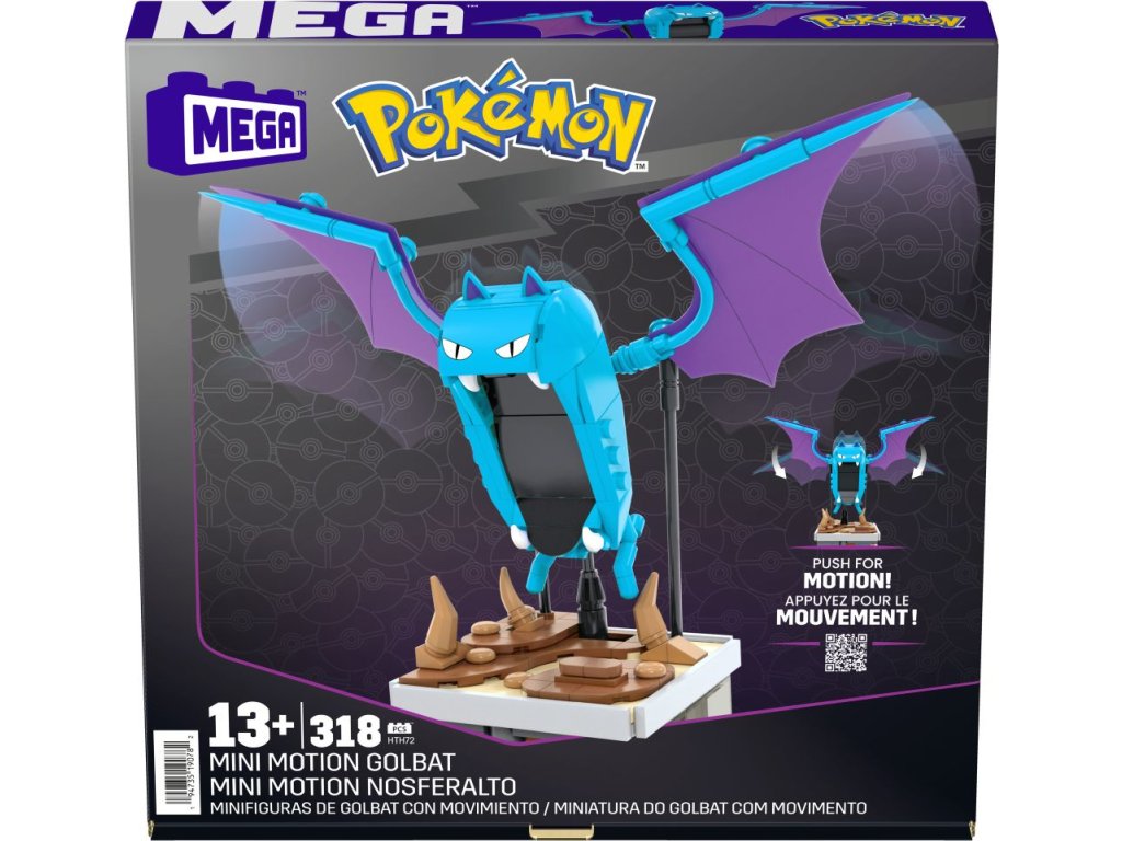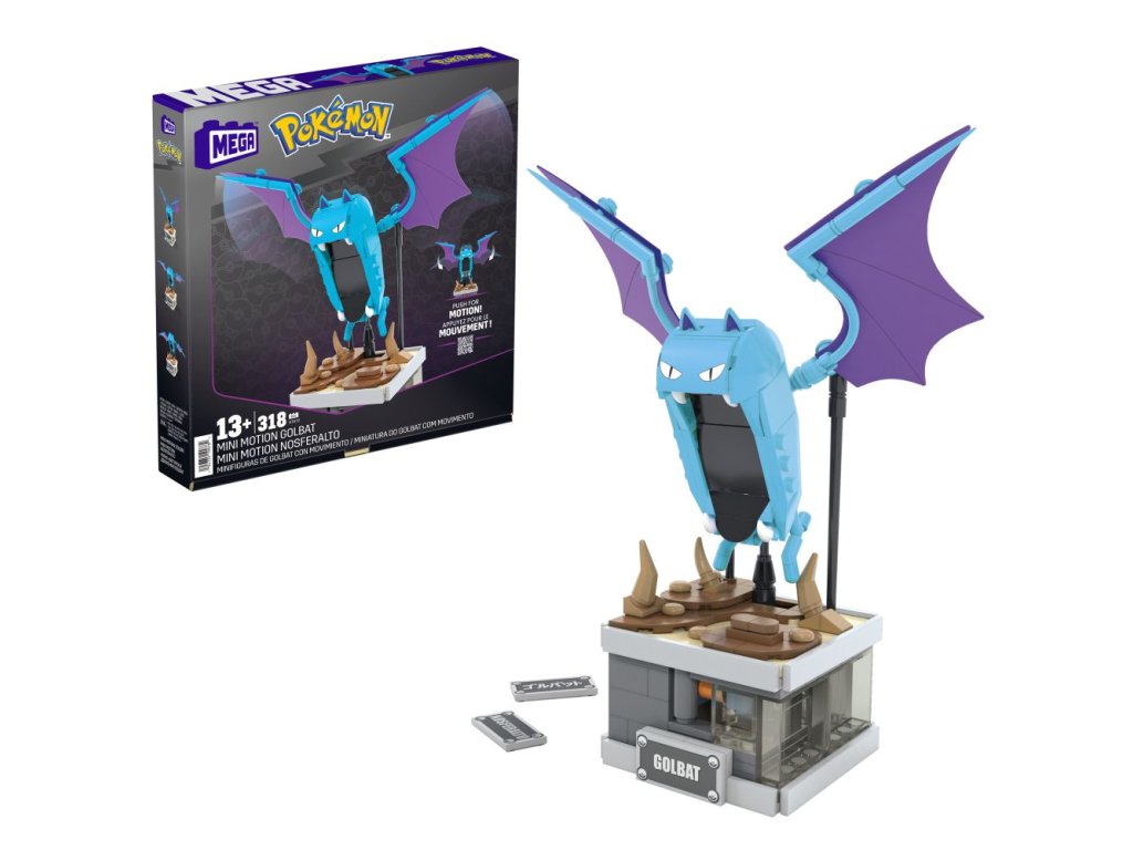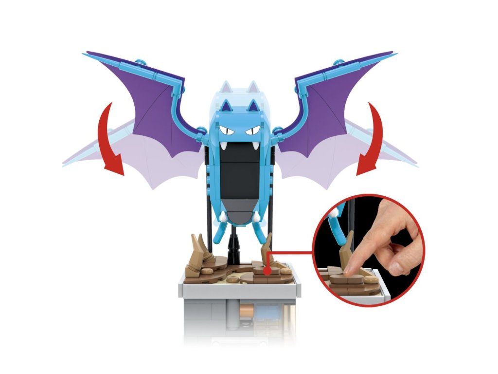 Pohyblivé stavební sety Pokémonů jsou nyní k dispozici v podobě miniatur. Postavte model a stiskněte skryté tlačítko, abyste viděli, jak Golbat mává křídly. Tento model je vysoký přibližně 13 cm.