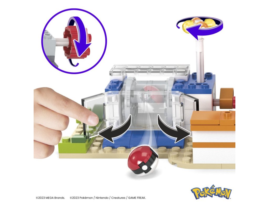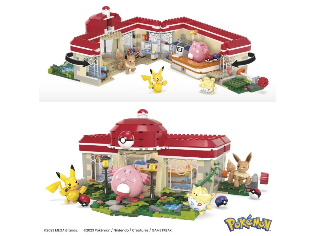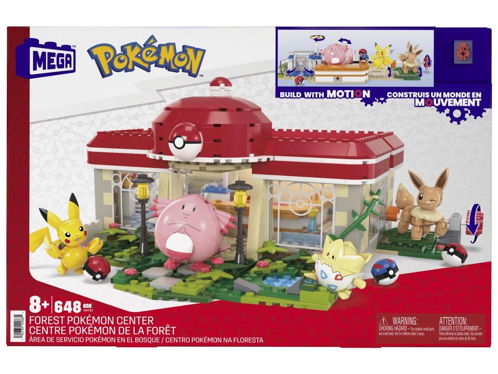 Vítejte v centru Pokémonů! Toto ikonické místo si nyní můžete postavit jako set se čtyřmi známými pokémony: Pikachu, Chansey, Eevee a Togepi. Otočením kliky uvidíte Chanseyho, jak tančí, Pikachu a Eevee, jak si hrají na schovávanou, a Togepiho, jak otevírá dveře.