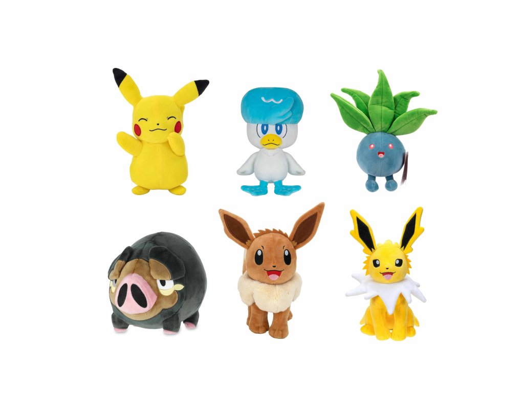 Sestava šesti plyšových Pokemonů, kteří mají vyšívané detaily a jsou měkkoučcí. Musíte chytit všechny!