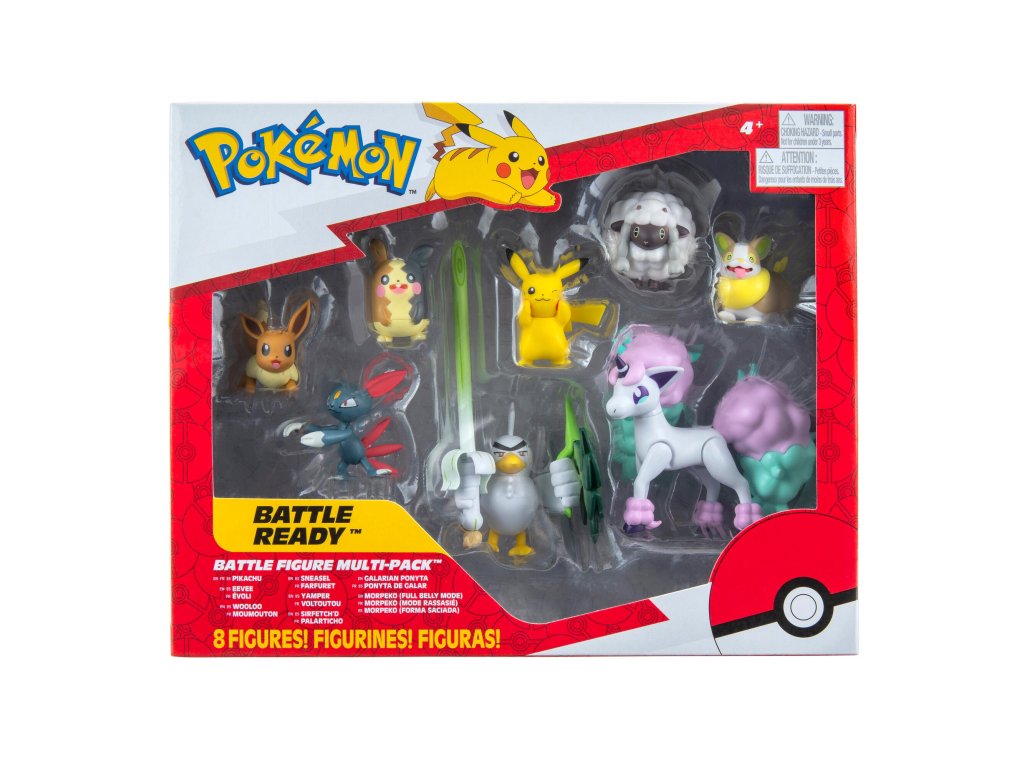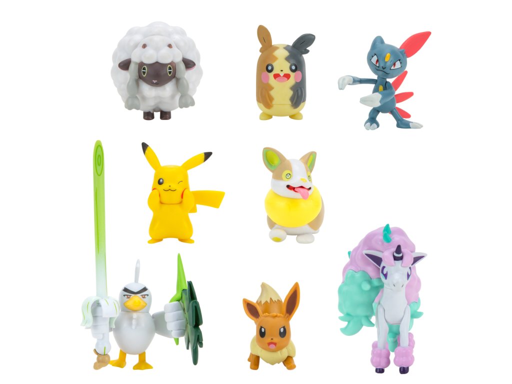 S touto úžasnou sadou 8 figurek (Yamper, Wooloo, Pikachu, Hangry Morpeko, Full Belly Morpeko, Toxel, Galarian Ponyta, Sirfetch'd) si snadno přenesete svět Pokémonů do svého pokoje! Musíte je všechny chytit!