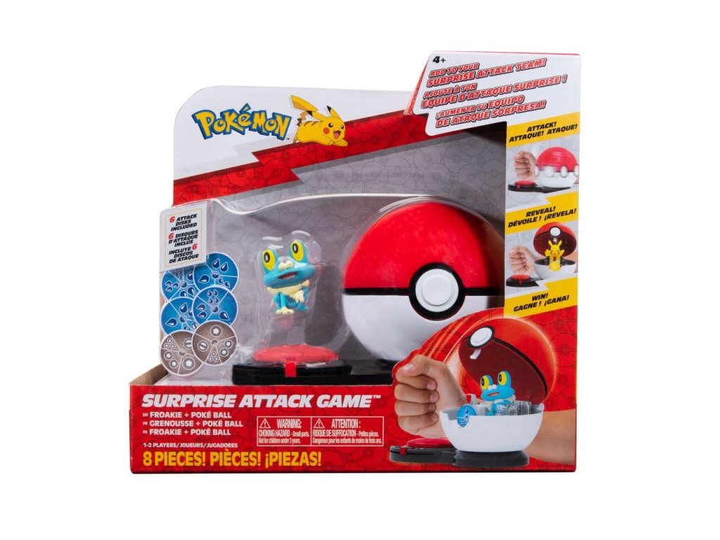 Hra Pokémon Surprise Attack má jednoduchá pravidla a je velmi návyková! Jediné, co musíte udělat, je vybrat Pokémona, se kterým chcete bojovat, a útočící disk, vložit je do Pokéballu Surprise Attack a stisknutím tlačítka Pokéball roztočíte a odhalíte svého Pokémona a jeho útok! Můžete hrát pravidla tréninku pro 1 hráče nebo vyzvat své přátele a zahrát si s nimi hru pro juniorské trenéry pokémonů, nebo rovnou přejít na další úroveň a zahrát si hru pro senior trenéry pokémonů!