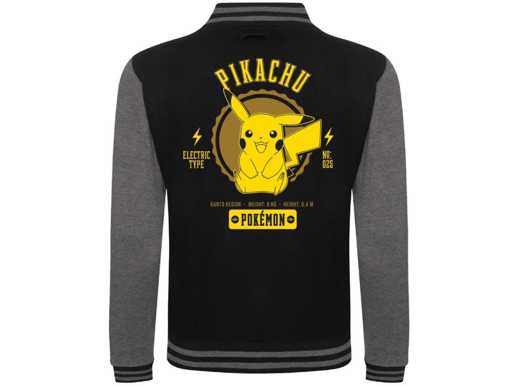 Atraktivní černá kvalitní bunda s číslem elektrického pokémona Pikachu na přední straně a potiskem bundy na zadní straně s kolegiátem Pokémona Pikachu. S touto bundou se budete cítit jako hlavní chytač Pokémonů.