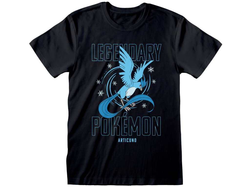 Černé tričko s grafikou Legendary Articuno (Legendární Pokémon). Jste fanoušek Pokémonu? Pak vám rozhodně nesmí v šatníku chybět toto atraktivní tričko s potiskem jednoho ze tří Legendárních ptačích pokémonu Articuno.