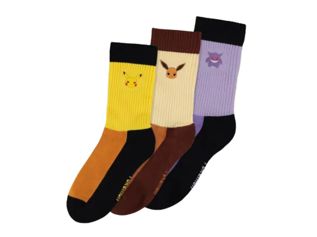 Set 3 párů ponožek vyvedené v motivu pokémonů. Vylepšete svou hru ponožek s tímto oficiálně licencovaným 3-balením ponožek Pokémon crew! Díky barevným blokům, které odpovídají Eevee, Gengarovi a Pikachu, předvádí svůj příslušný Pokémon patch. Ideální pro fanoušky, kteří chtějí do svého šatníku přidat zábavný a stylový nádech.